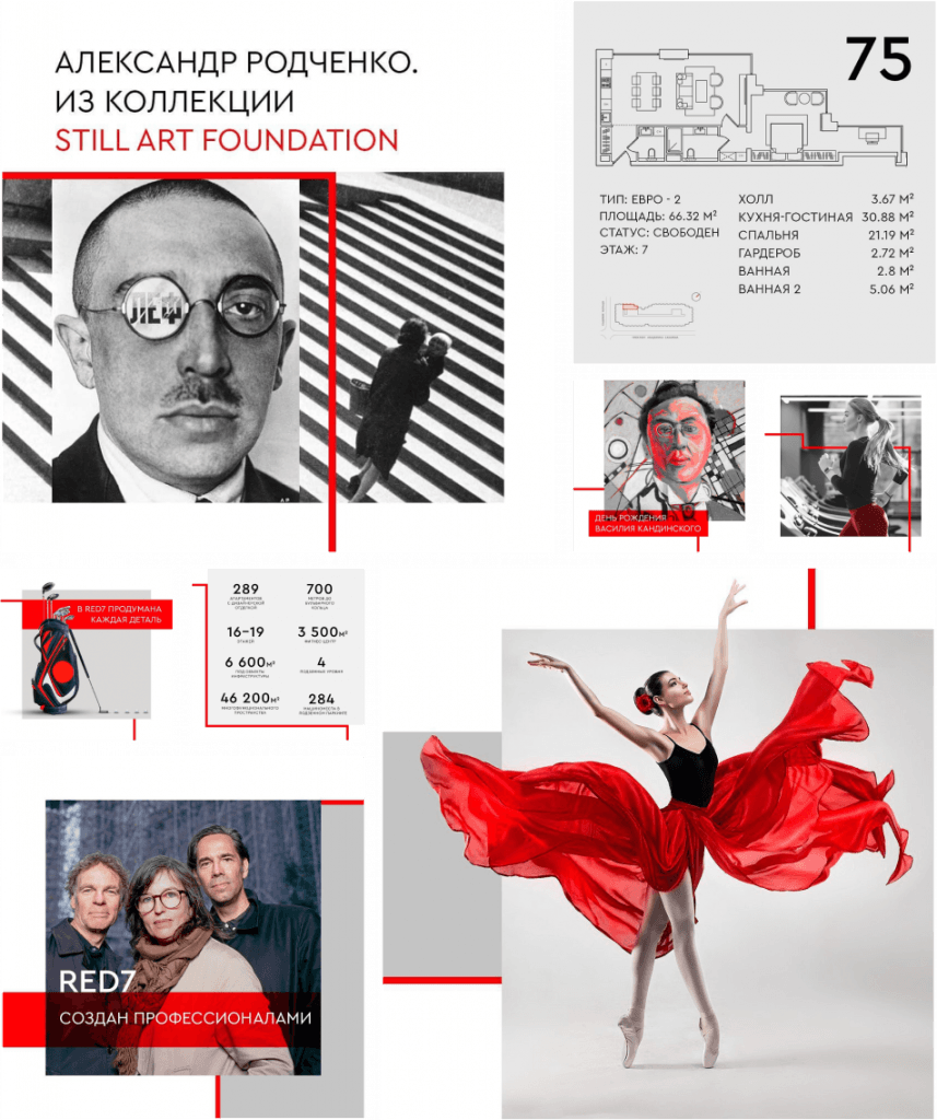 Вооружившись продуманной бренд-платформой, портретами целевой аудитории и задачей клиента оформить проект в соцсетях максимально привлекательно, мы запустили в соцсетях историю комплекса премиальных апартаментов RED7.