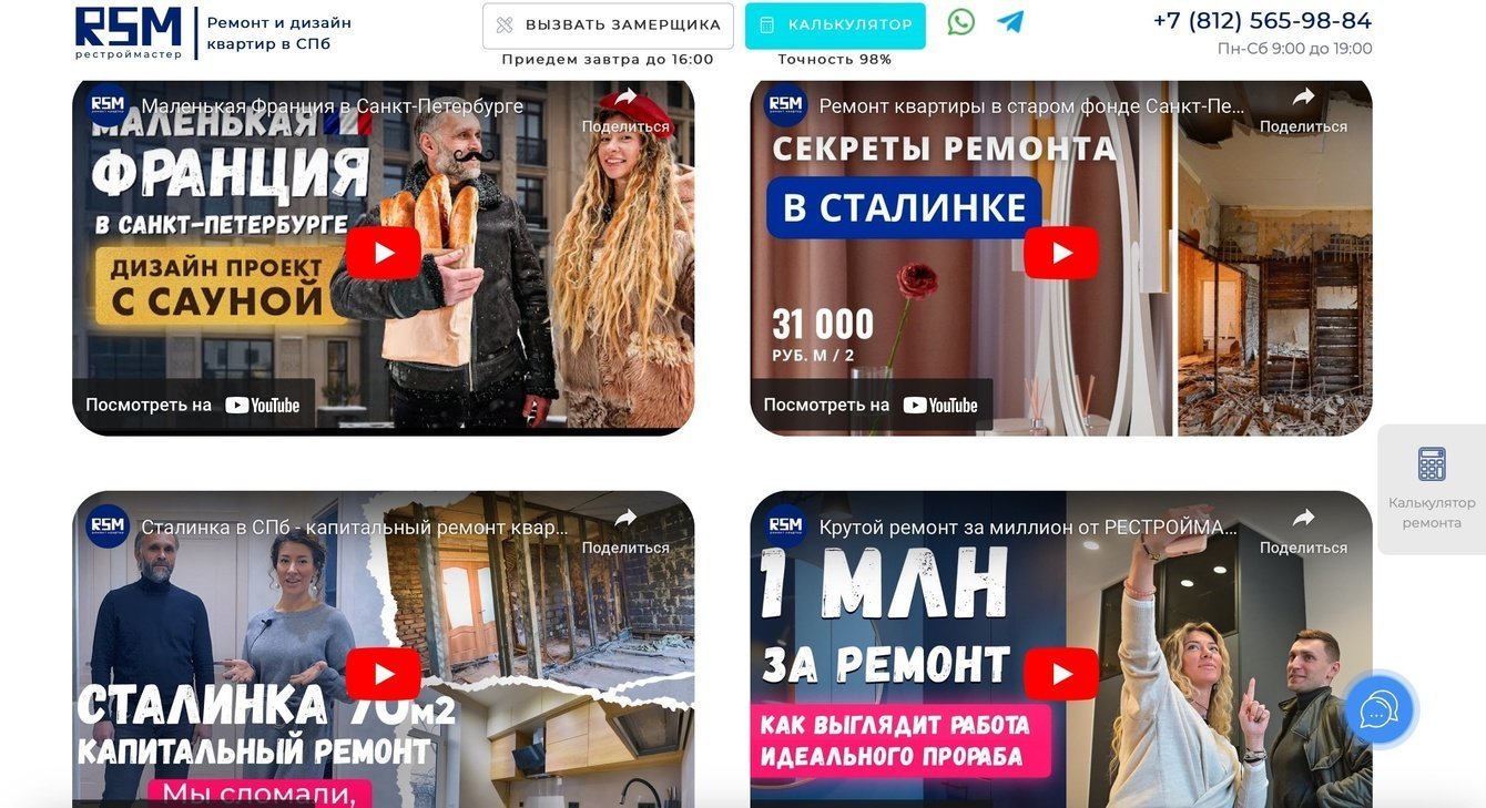 Видео-контент: создавали и продвигали видео на YouTube с процессами ремонта, отзывами клиентов и советами.