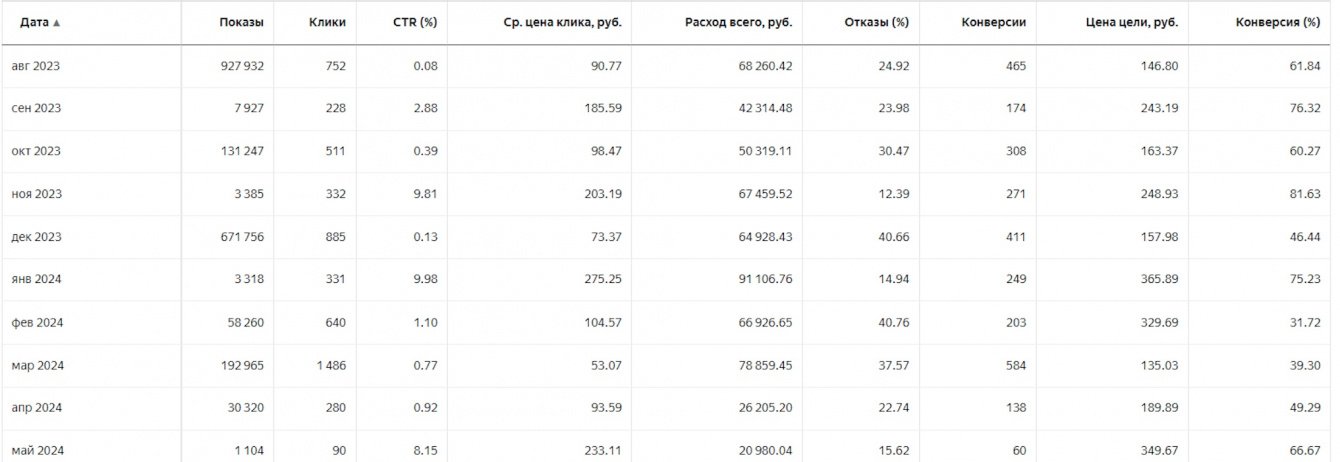 В Яндекс.Директ: она варьируется в зависимости от конкуренции и качества целевой страницы. Средняя стоимость лида составляла от 2000 до 2500 рублей.