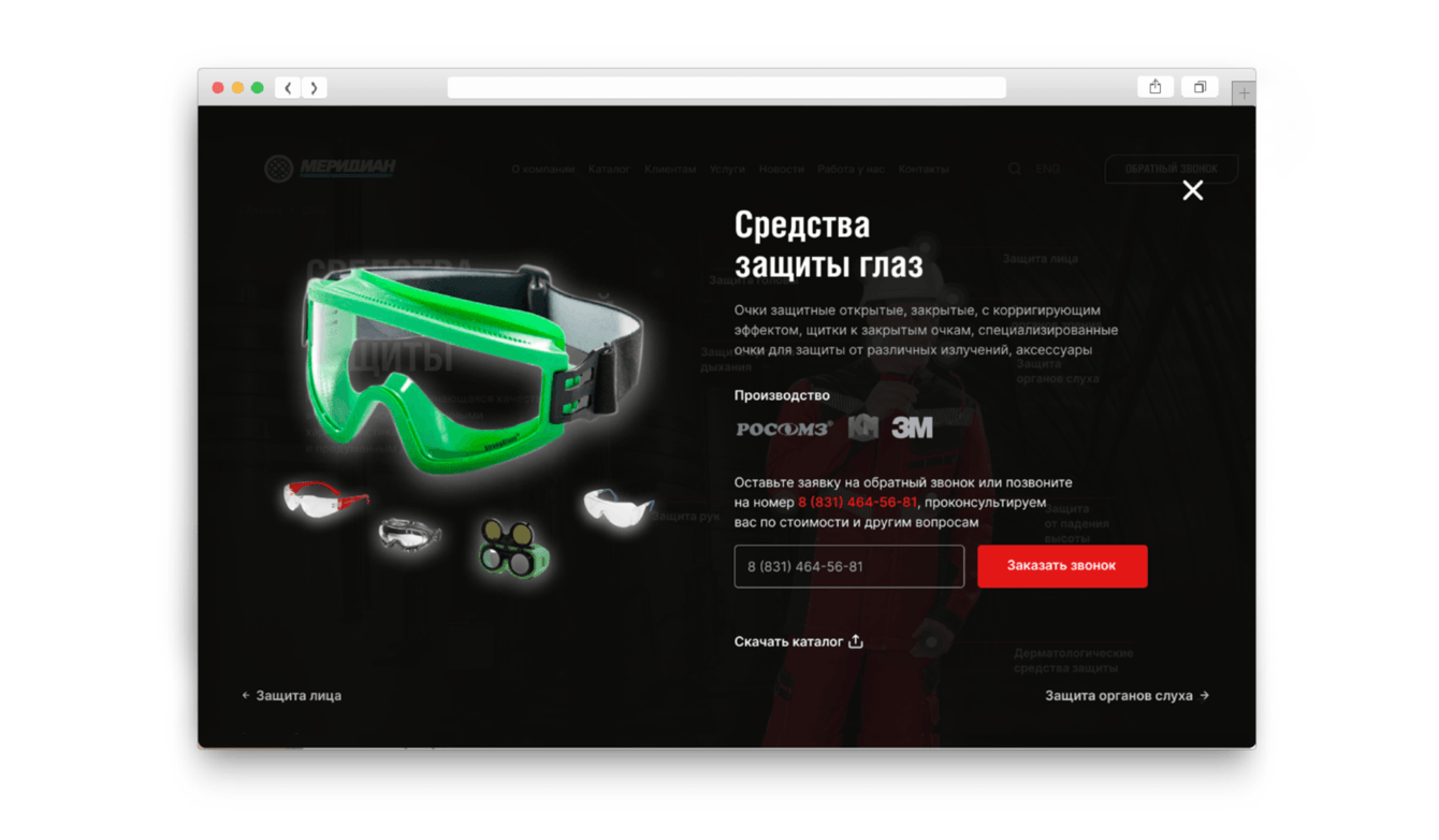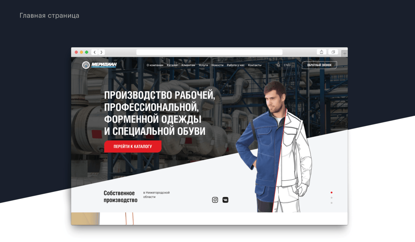 Клиент: производственная компания «Меридиан», поставляющая спецодежду, спецобувь, средства защиты и обеспечения безопасности.
