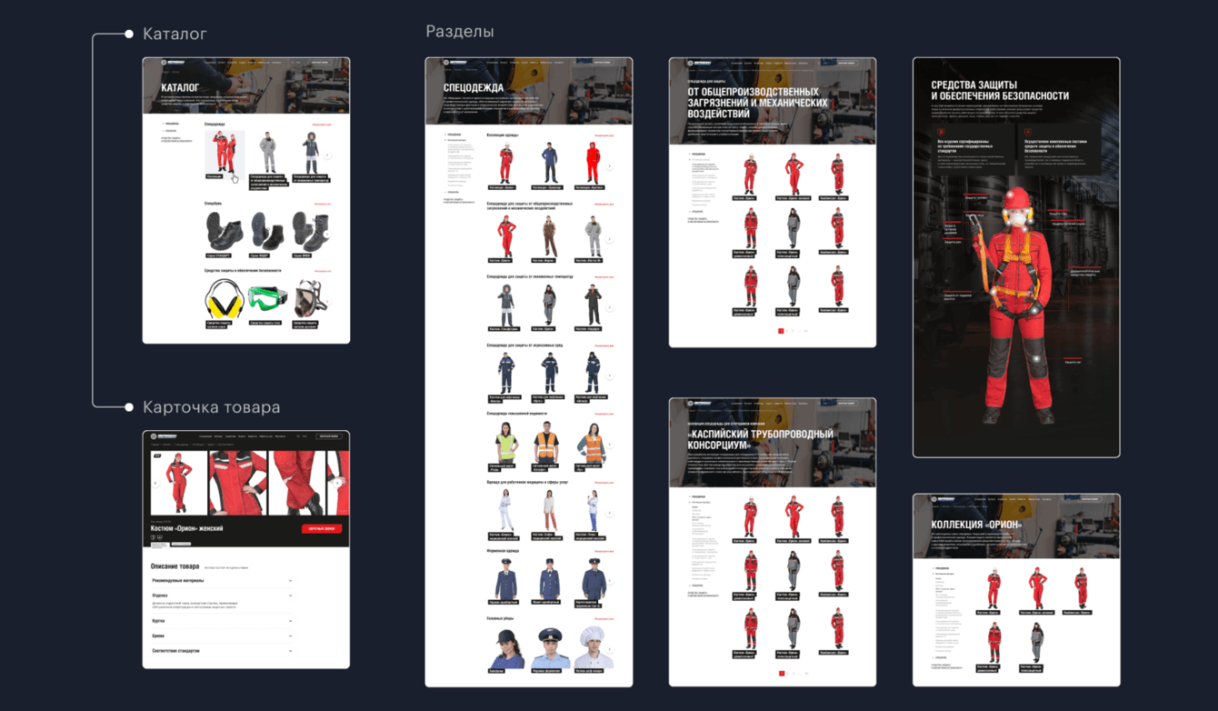Посетитель сайта может ознакомиться с обширным каталогом продукции и услугами компании, заказать проектирование и конструирование специальной одежды и обуви, определить свой размер одежды, изучить основные ГОСТы продукции, расшифровать символы по уходу, следить за актуальными новостями, а также познакомиться с историей, корпоративной культурой, традициями компании и даже откликнуться на открытую вакансию.