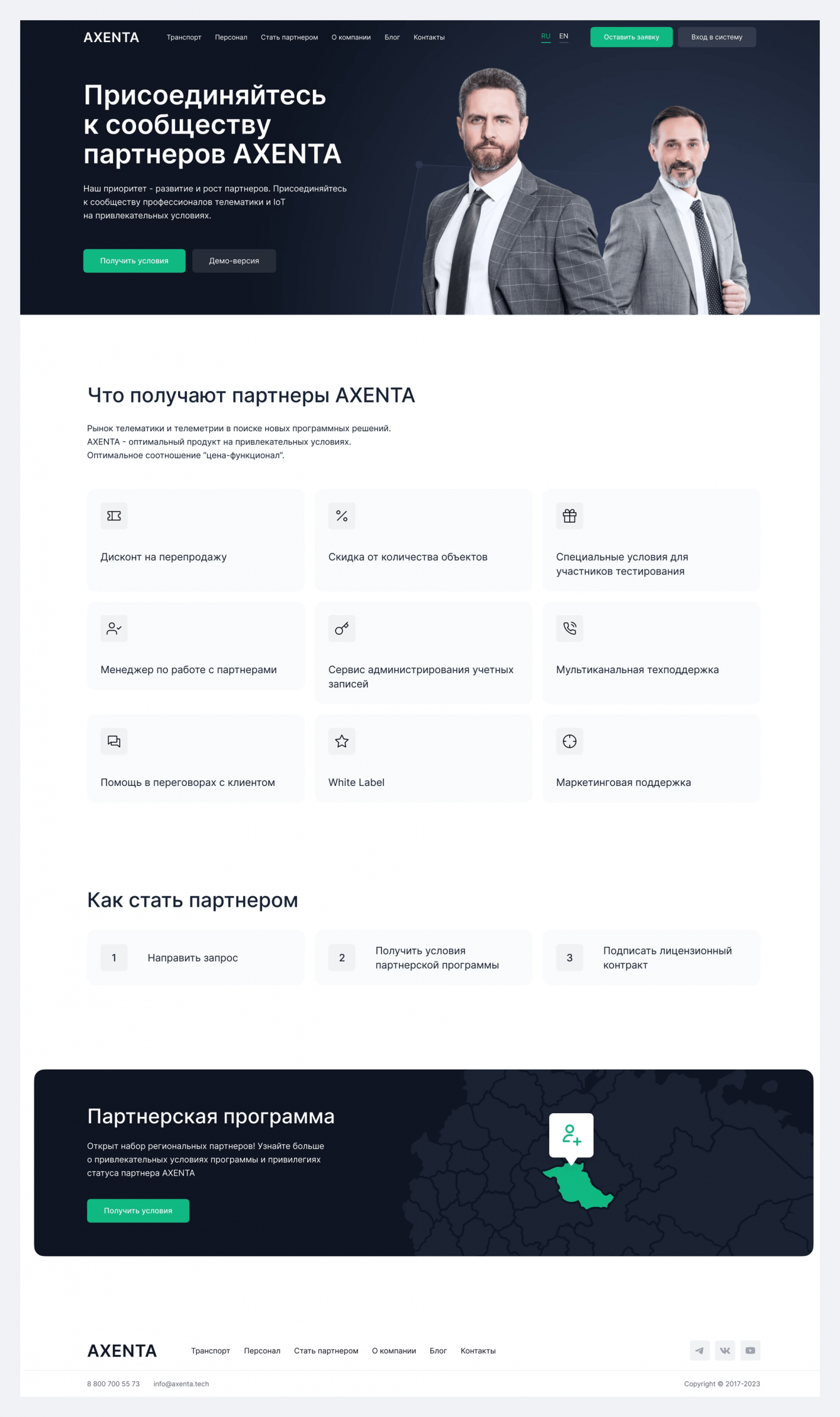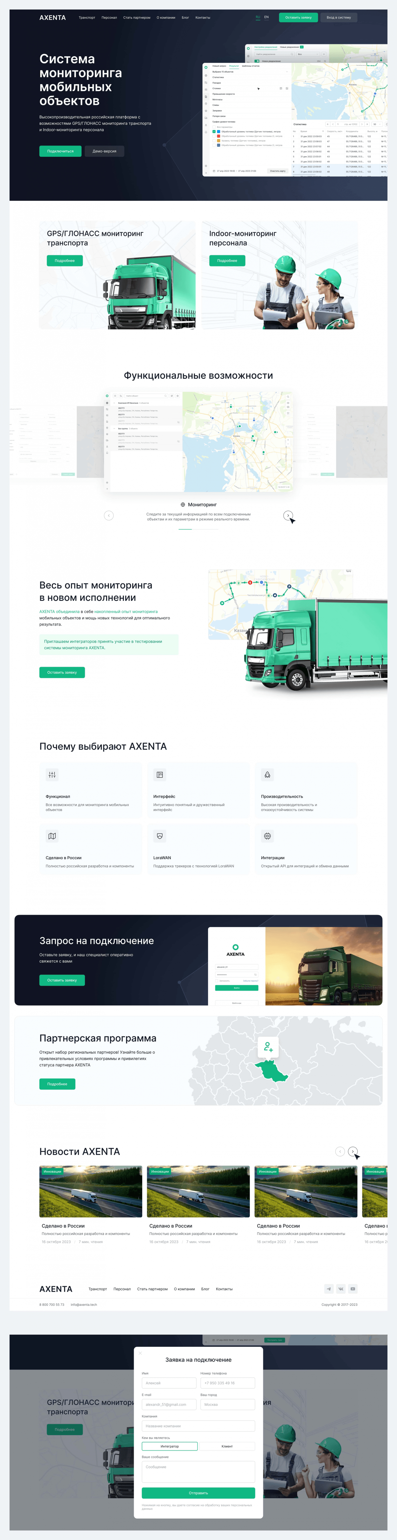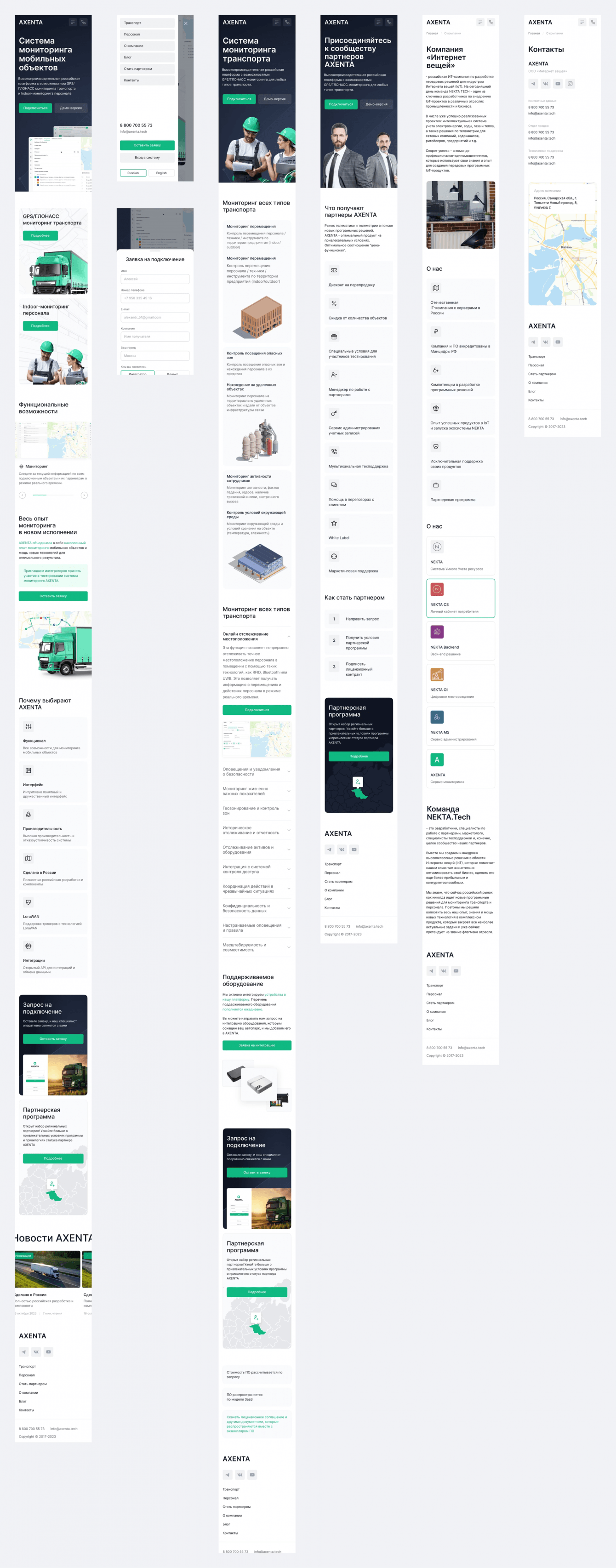 Под каждый раздел отрисовали уникальные страницы: для решений по мониторингу легковых авто, грузовиков, спецтехники и персонала.