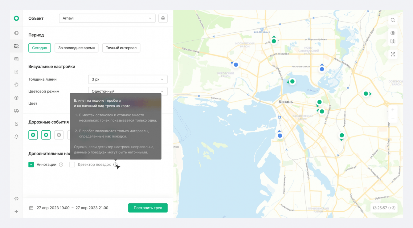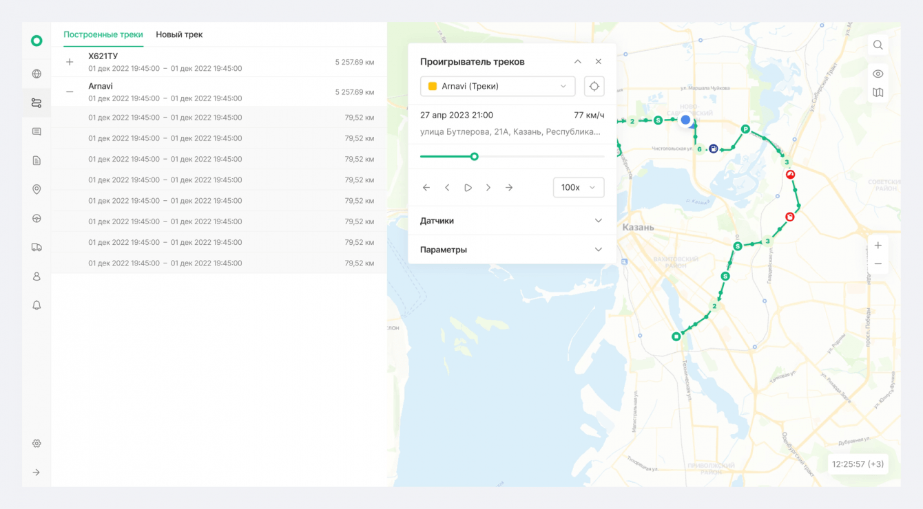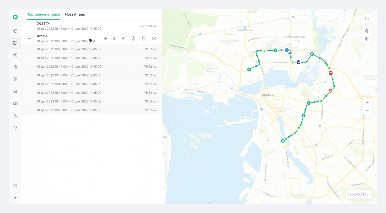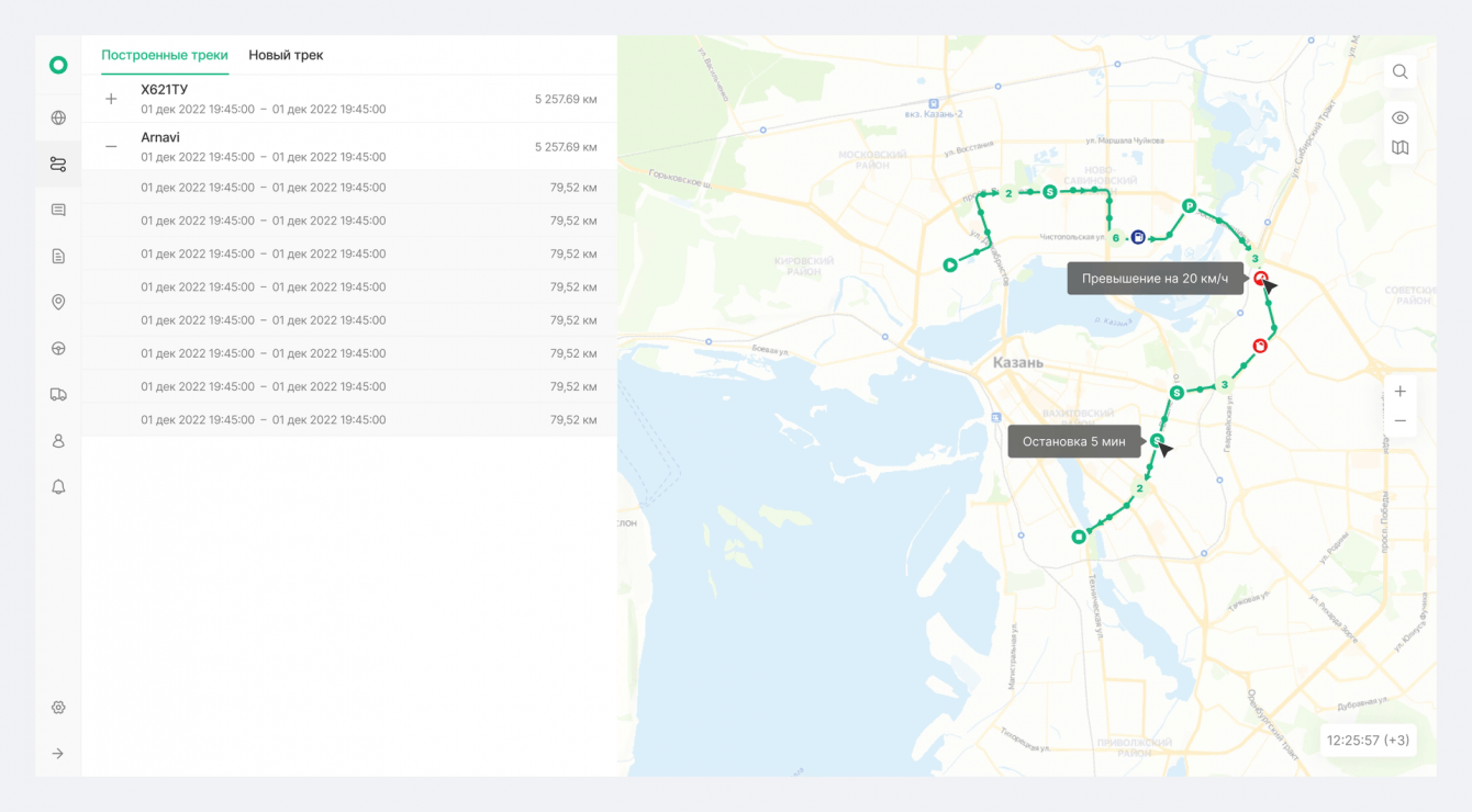 Cоздали личный кабинет, основываясь на примере конкурентов, но расширили его функционал. Добавили возможность отслеживать маршрут движения транспорта, включая данные о скорости и нарушениях, которые отображаются специальными иконками на карте.
