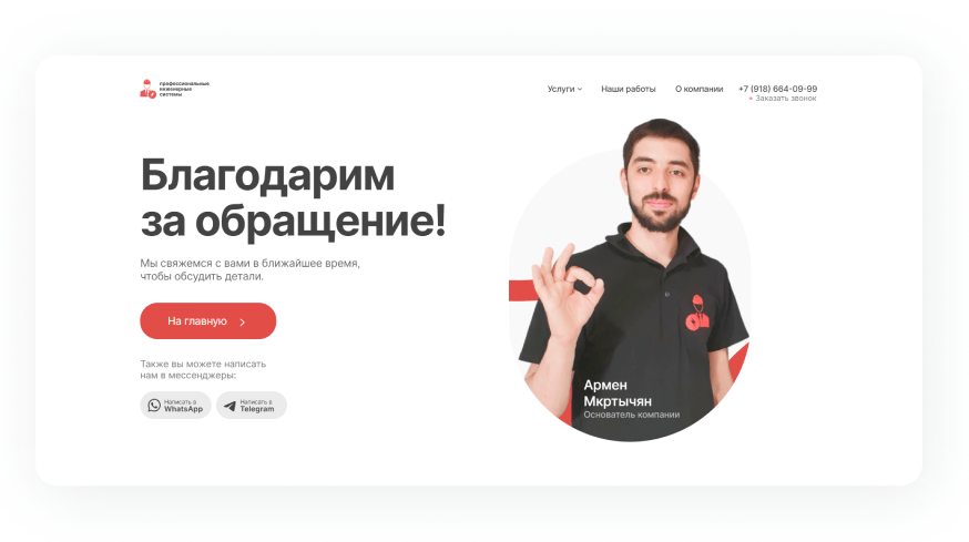 Для каждого проекта делаем страницу благодарности, на которую перекидывает посетителя после оставления контактных данных.