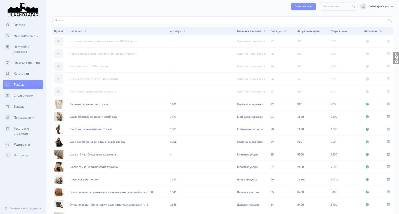 Админ-панель для управления клиентами, заказами, контентом на сайте.