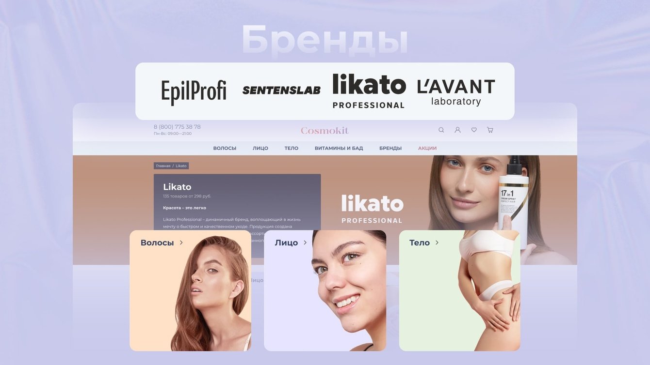 Нельзя забывать и о брендах. Каким-то пользователям они важны не меньше, чем отдельные средства ухода. По этой причине мы подготовили особый раздел, ведущий на страницы брендов:
