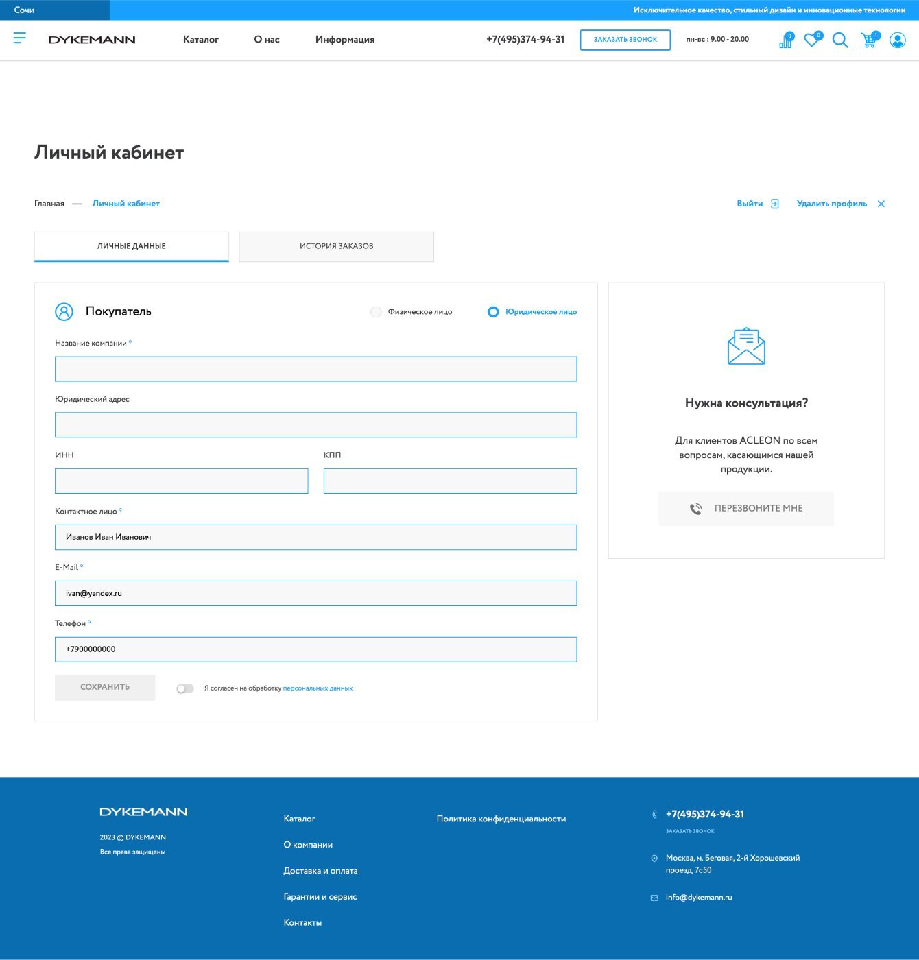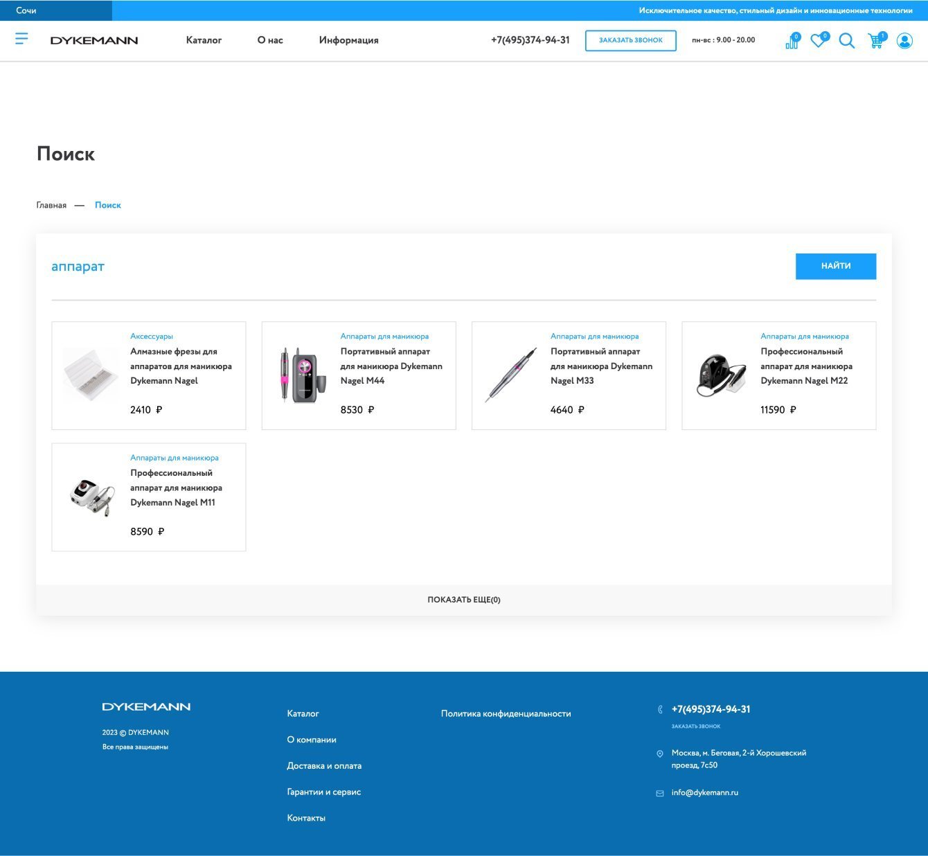 При разработке дизайна мы ориентировались на интернет-магазин Oberhof, который также принадлежит владельцу бренда Dykemann.