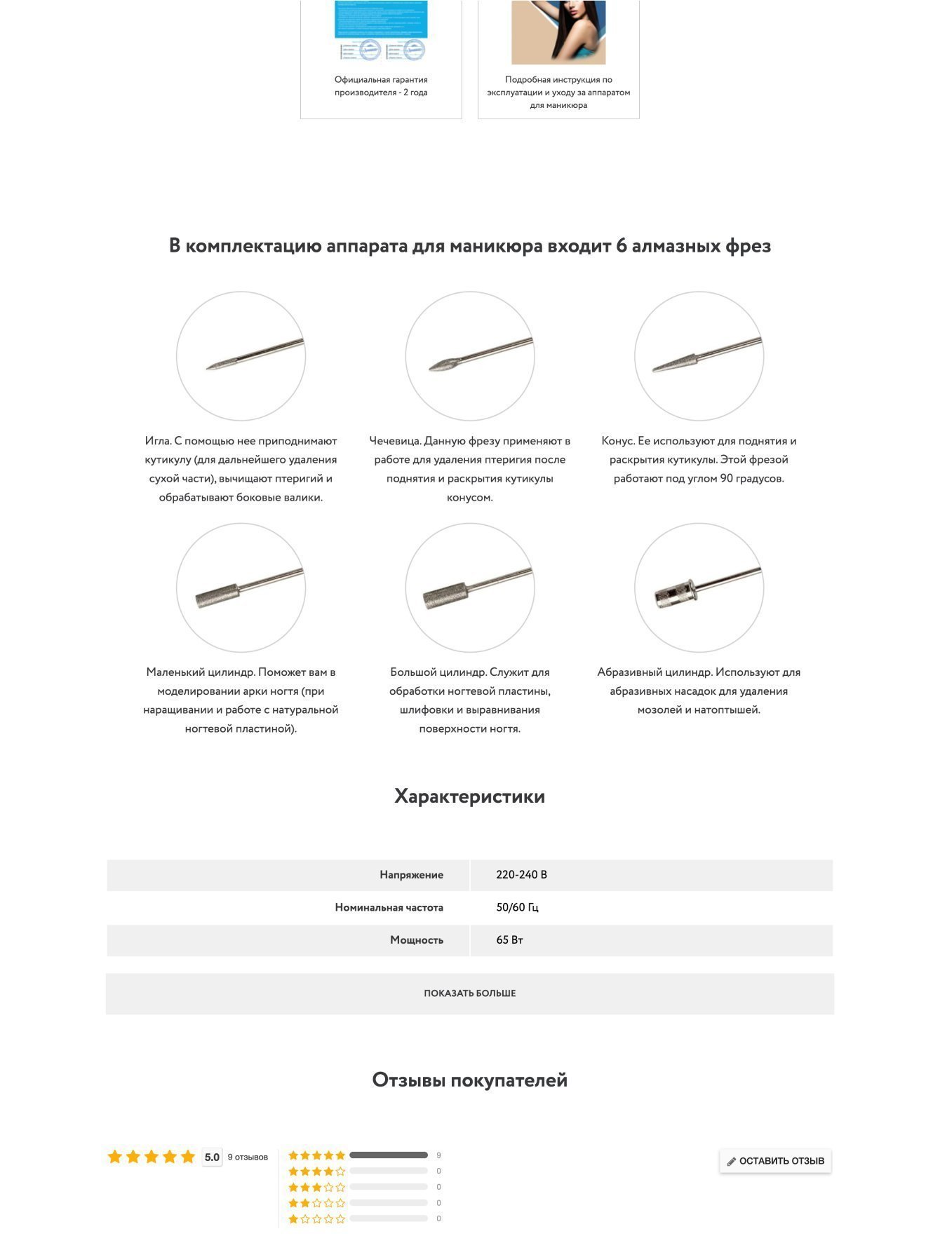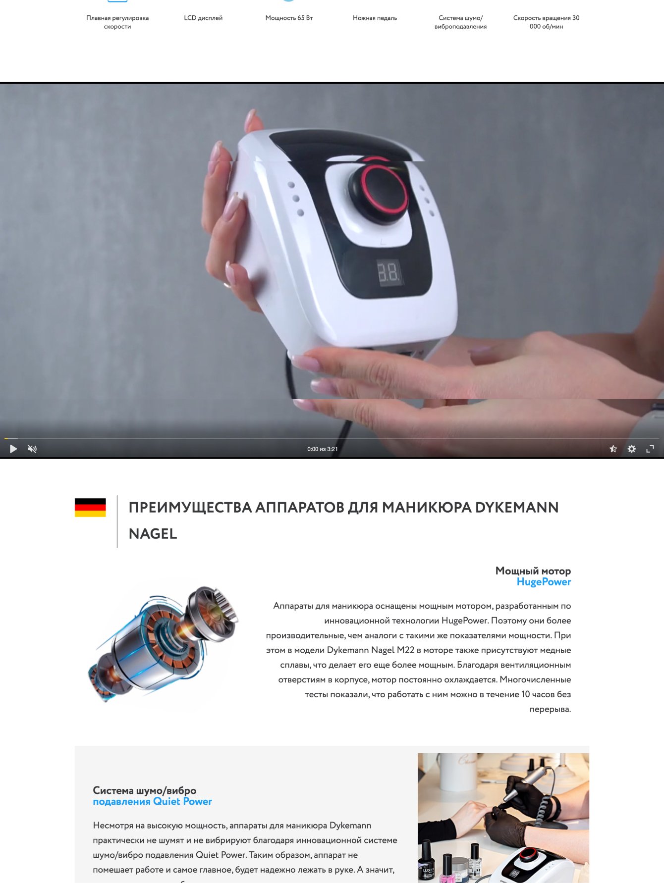 Каждая карточка товара реализована в формате посадочной страницы, адаптированной под дальнейшее продвижение сайта.