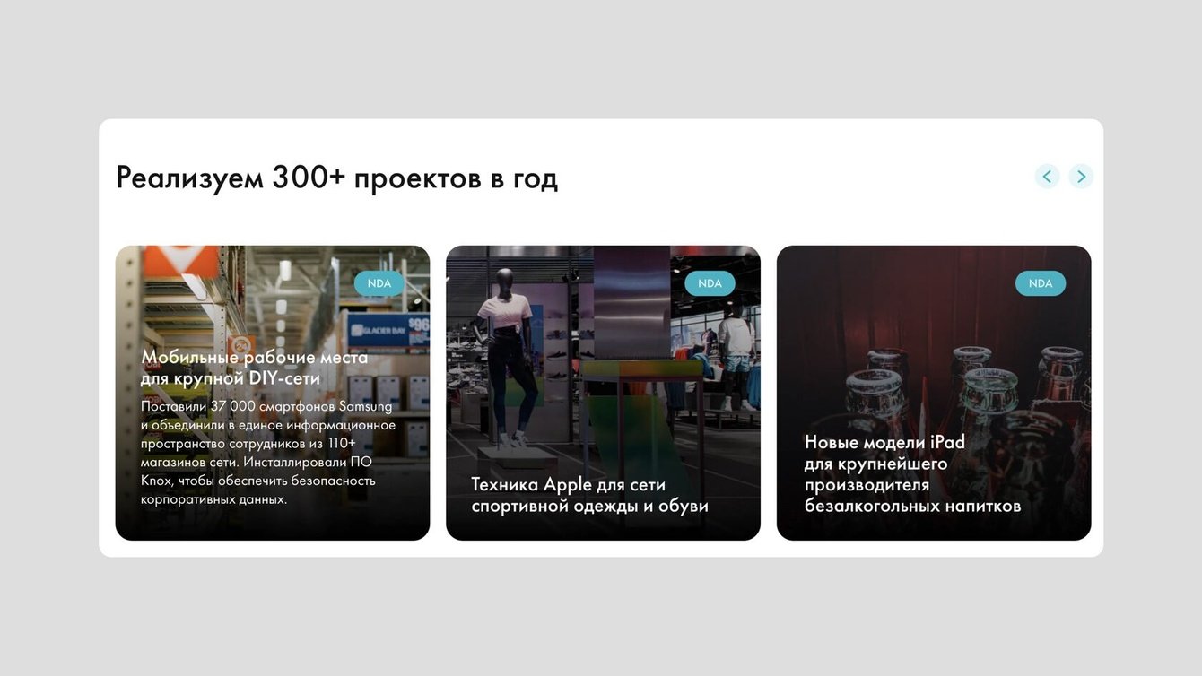 Сайт сделали за 1,5 месяца. Дополнительно задизайнили и сверстали страницу с вендорами и каталог техники. Для страницы с вендорами по просьбе клиента разработали отдельную дизайн-концепцию с фильтрами, чтобы пользователям легче было искать нужную технику.