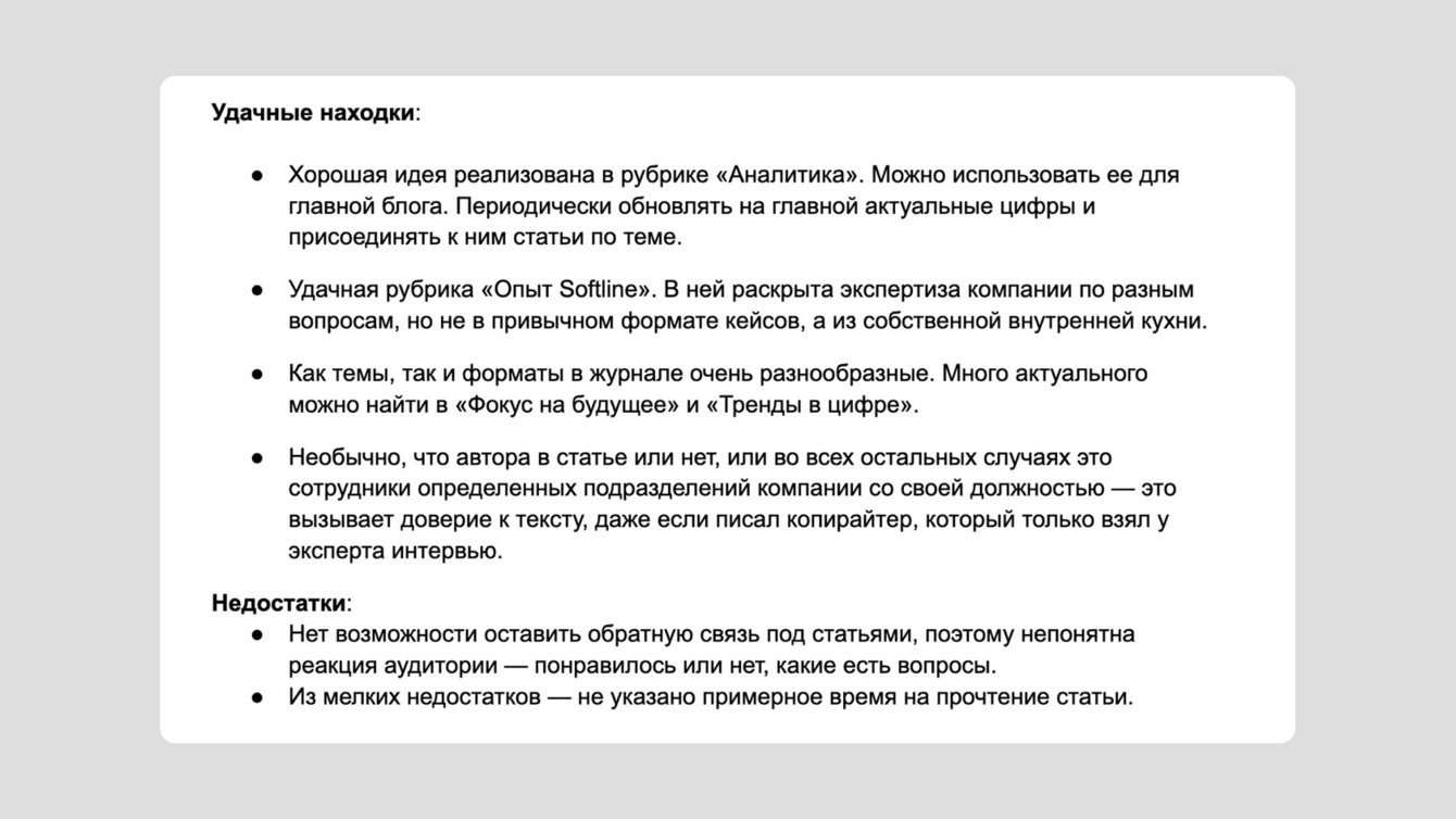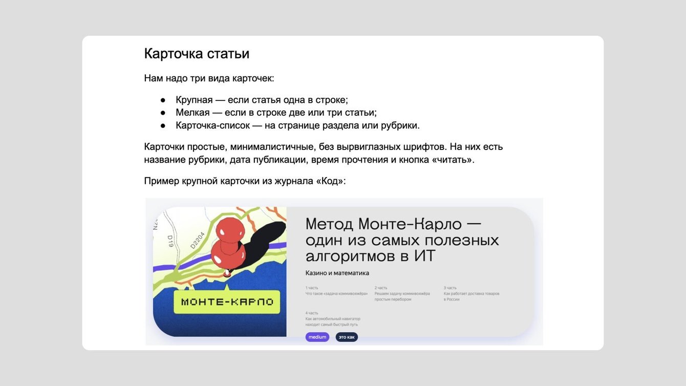 В итоге отдали клиенту гуглдок, который состоял из шести ссылок на отдельные документы, — всего на 109 страниц. Всю работу сделали за месяц.