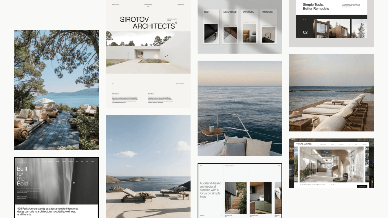 3. Составили мудборд сайта и собрали референсы. Сформулировали визуальные принципы сайта: акцент на фотографиях, нестандартная сетка, теплые, природные приглушенные и мягкие оттенки, блоки и фото прямоугольной формы с крупной типографикой без засечек.