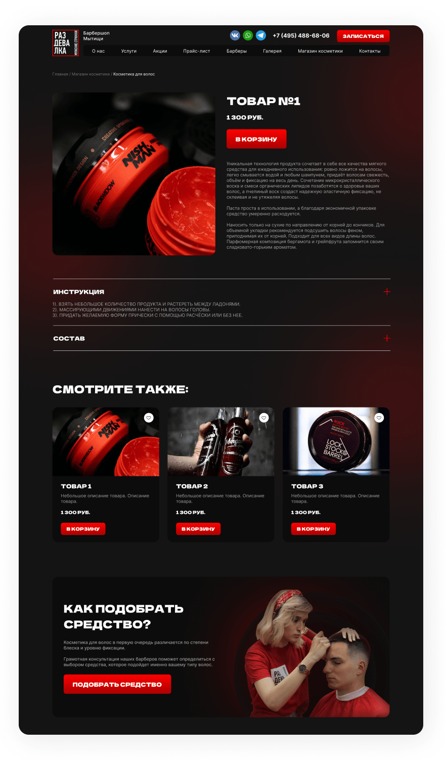 Сделали конверсионные страницы по всем услугам барбершопа, где также можно ознакомиться с прайсом барбершопа.