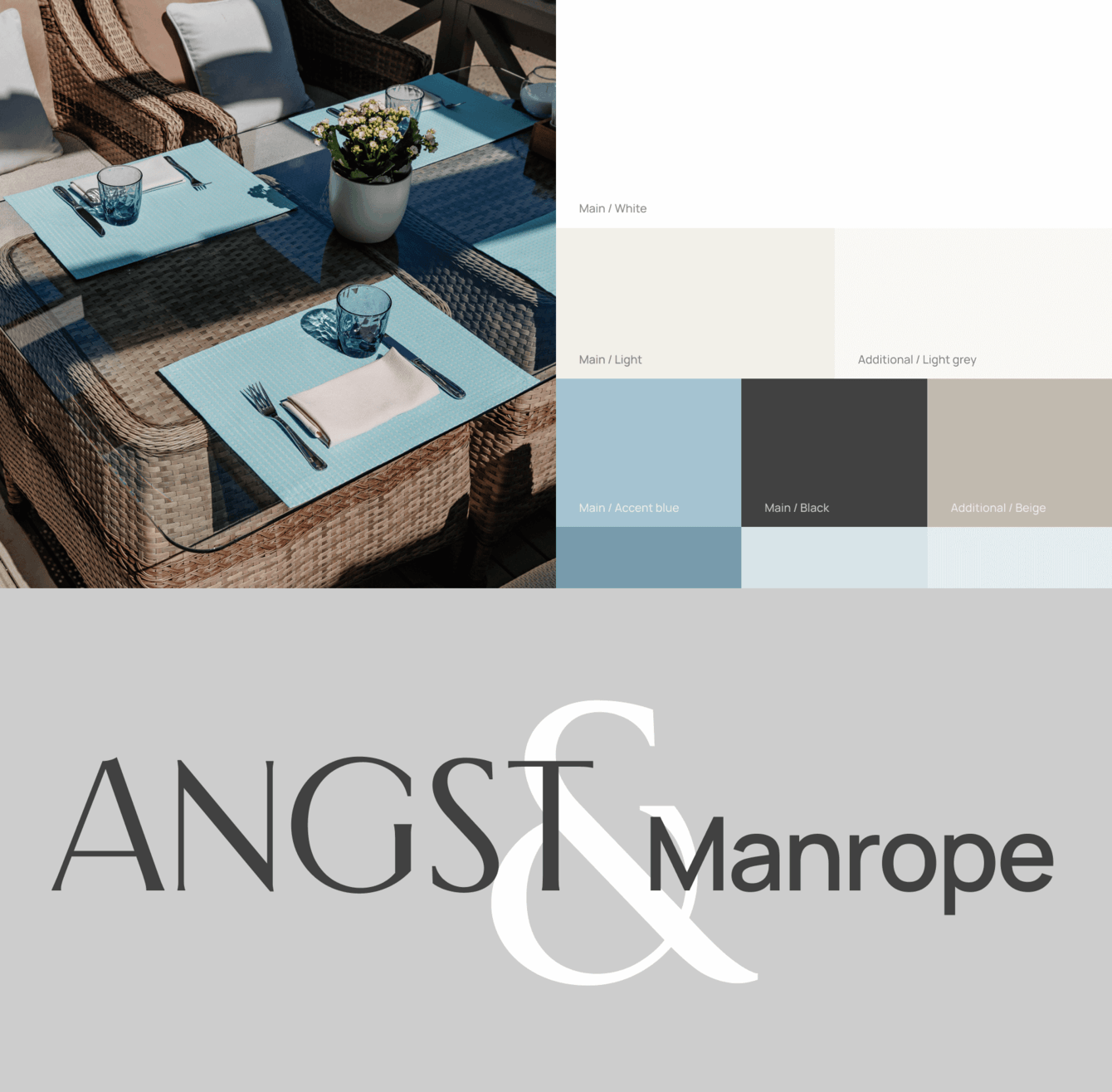 Для дизайн-концепции сайта мы предложили заказчикам палитру, которая напоминает цвет элементов интерьера самих ресторанов. Пастельные оттенки бежевого и голубого мы использовали для элементов управления и навигации. Контрастные светлые и темные оттенки оставили для фона и текстового контента.