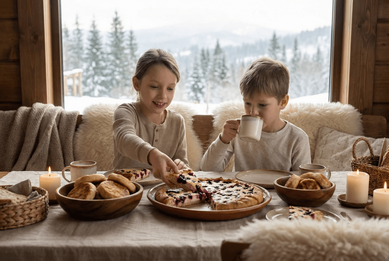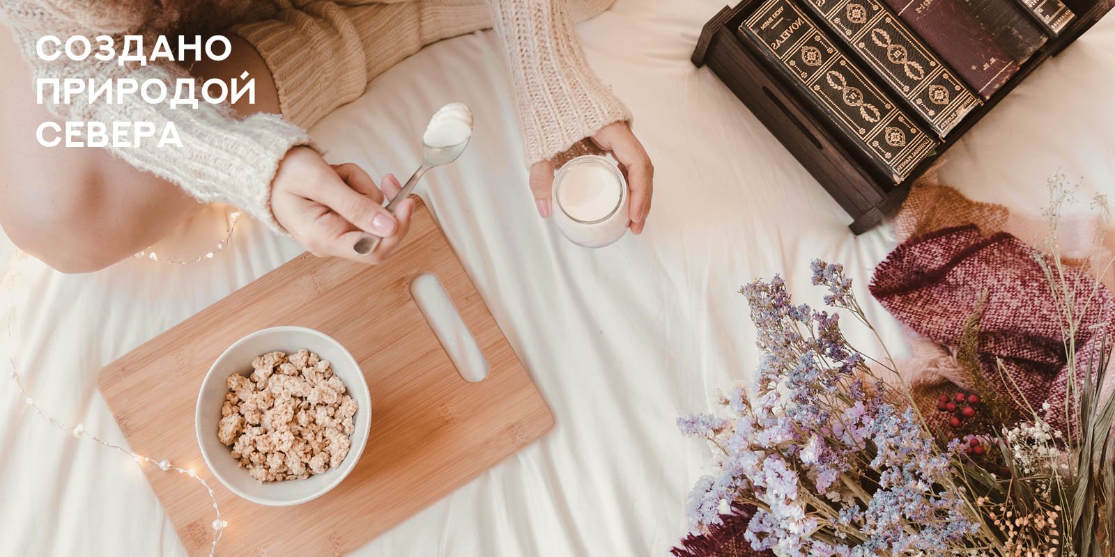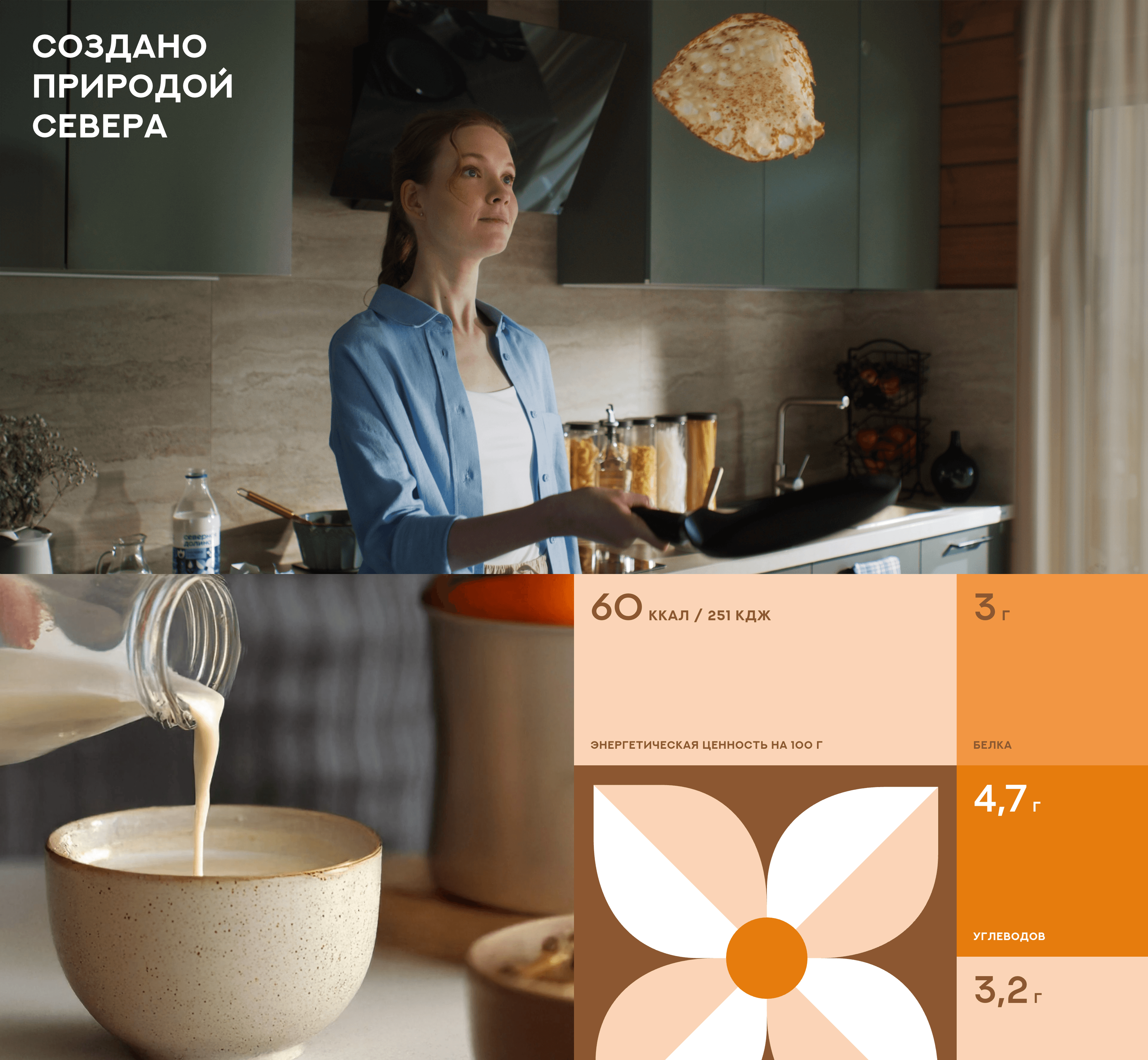 Мы использовали уютные образы в рамках этой концепции: домашний очаг, натуральная еда на столе, северная природа за окном, комфорт и тепло — как будто заходишь домой с холодной улицы.