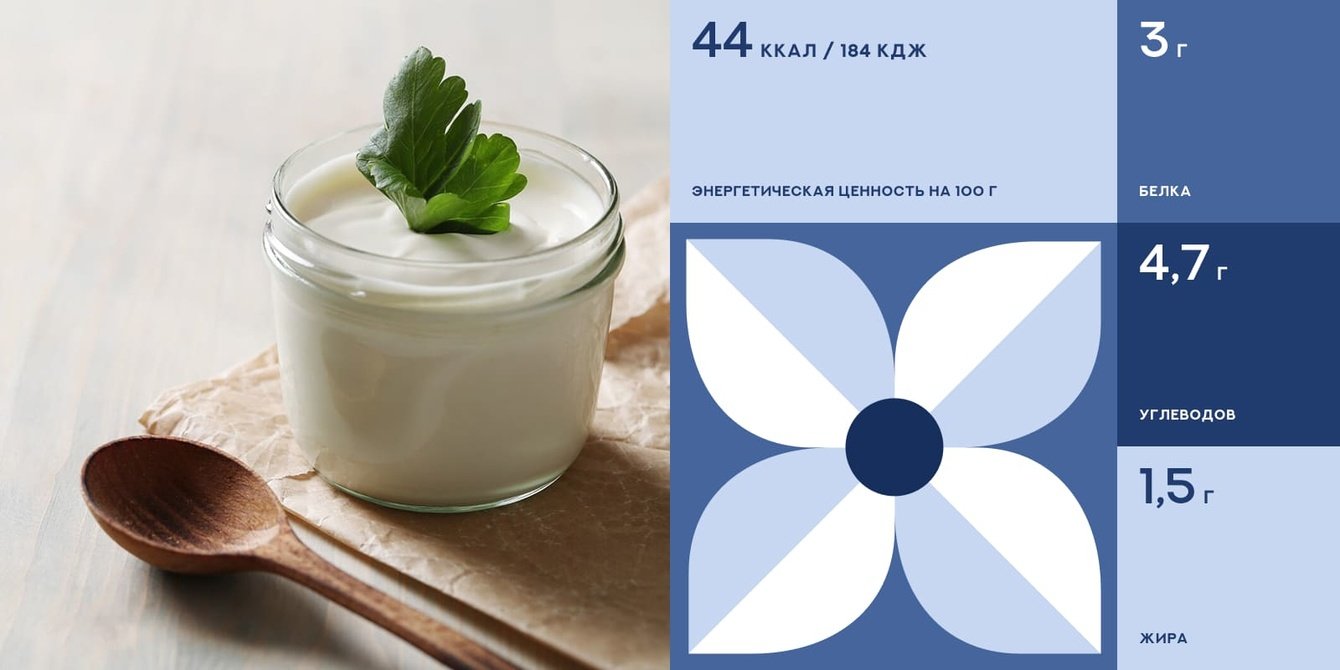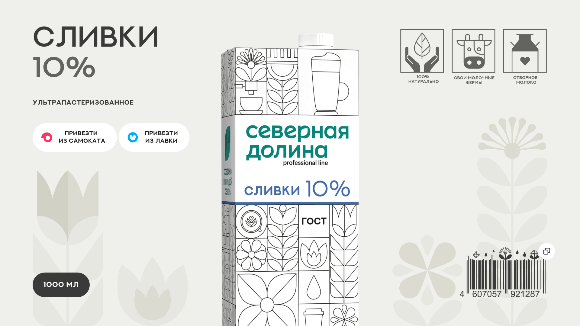 Страницы продуктов наследуют цветовую кодировку линеек, чтобы сохранить узнаваемость и упростить поиск на витрине магазина. К примеру, зеленый оттенок, свойственный для упаковок кефира, наследуют страницы о кефире, голубые оттенки сохраняются на странице молока жирностью 2,5%.