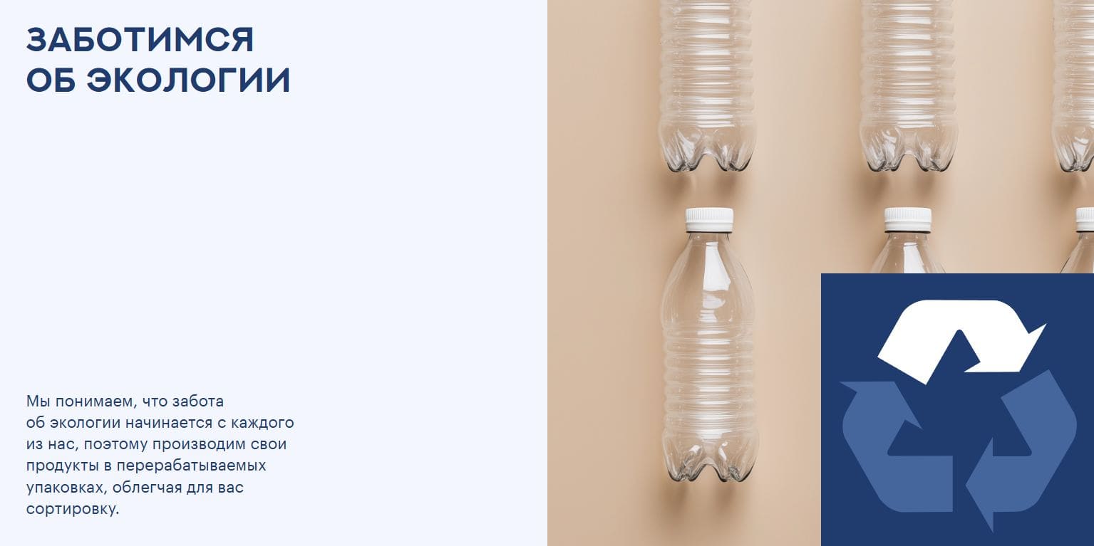 Исходный сайт напоминал интернет-магазин: каталог состоял из карточек товаров с небольшими фотографиями упаковки на белом фоне и перечнем характеристик. У сайта нет цели продать товар, он нужен для презентации бренда, поэтому мы изменили подход. Новый сайт демонстрирует подход бренда к производству, принципы, философию.