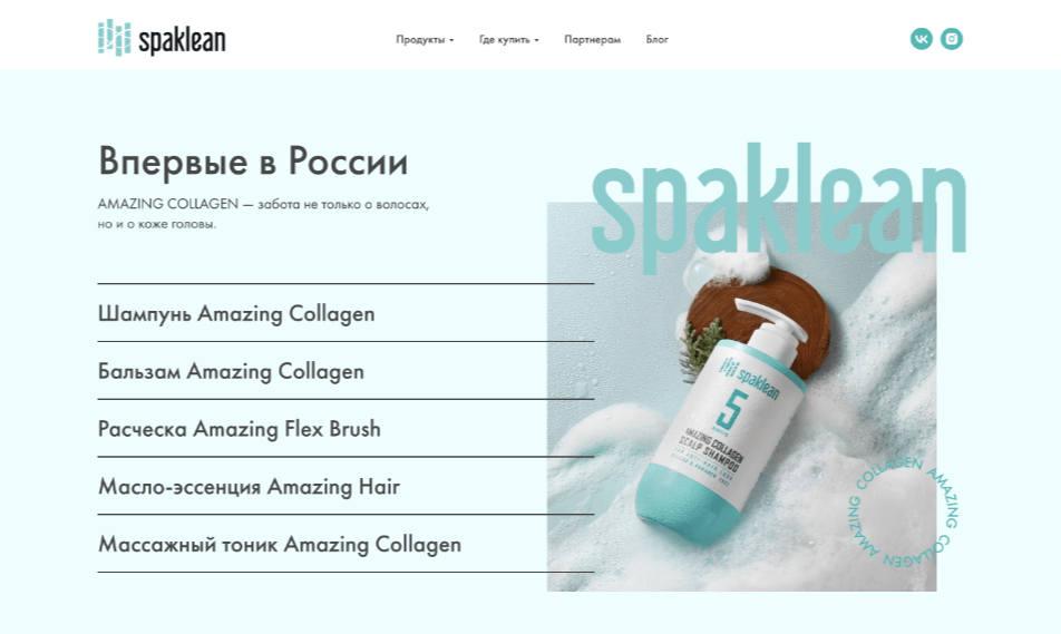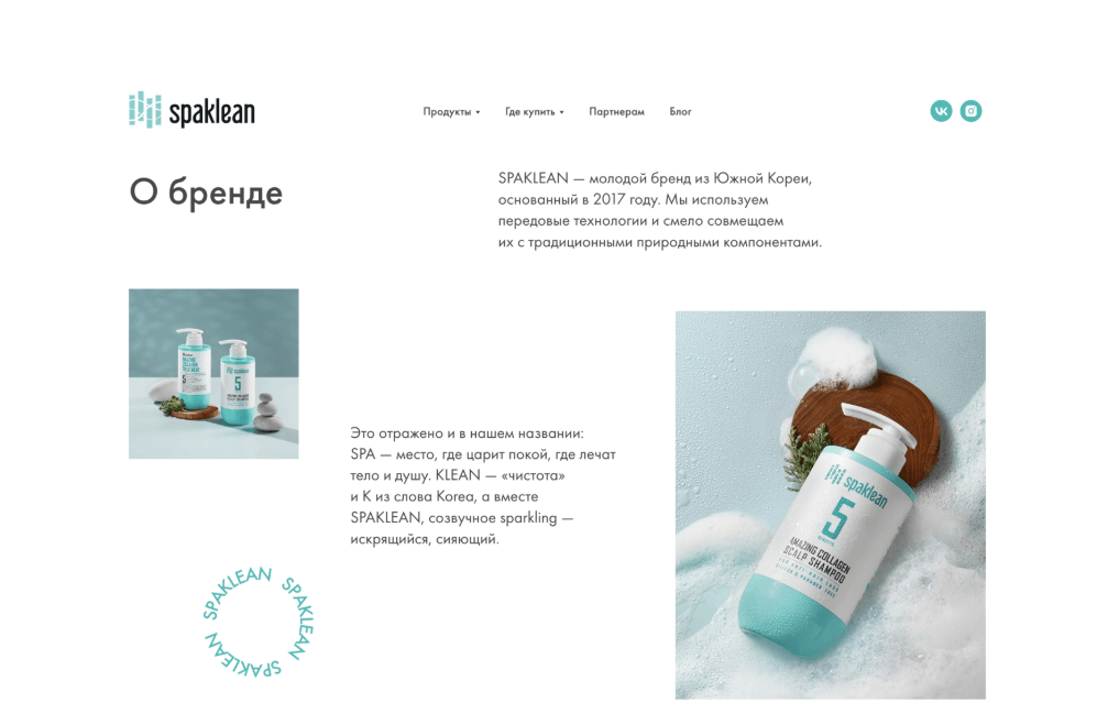 Для клиента SPAKLEAN было важно произвести «вау-эффект» при запуске своего продукта на российском рынке. При этом необходимо было соблюсти исходные гайдлайны от корейского производителя и адаптировать их под использование на сайте.