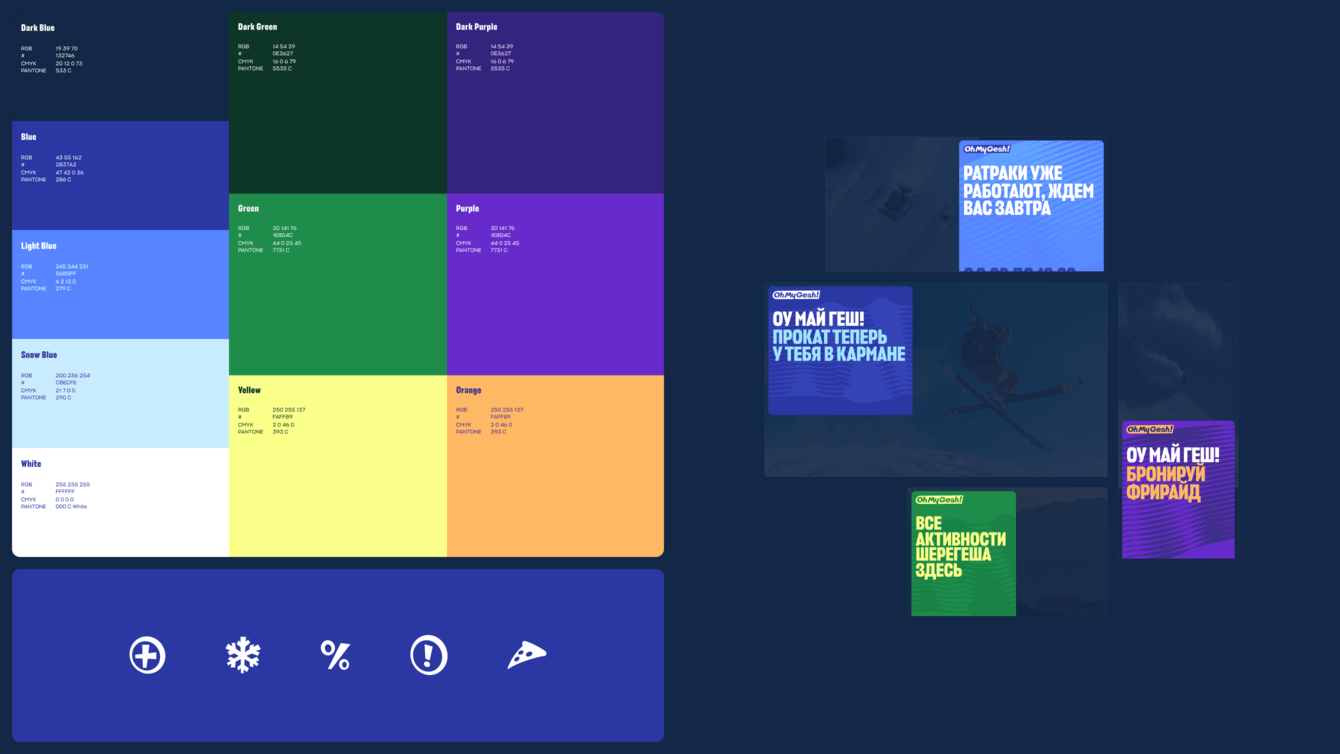 Подобрали фирменные шрифты и цвета, согласно выбранной концепции, затем это все оформили в фирменную иконографику.