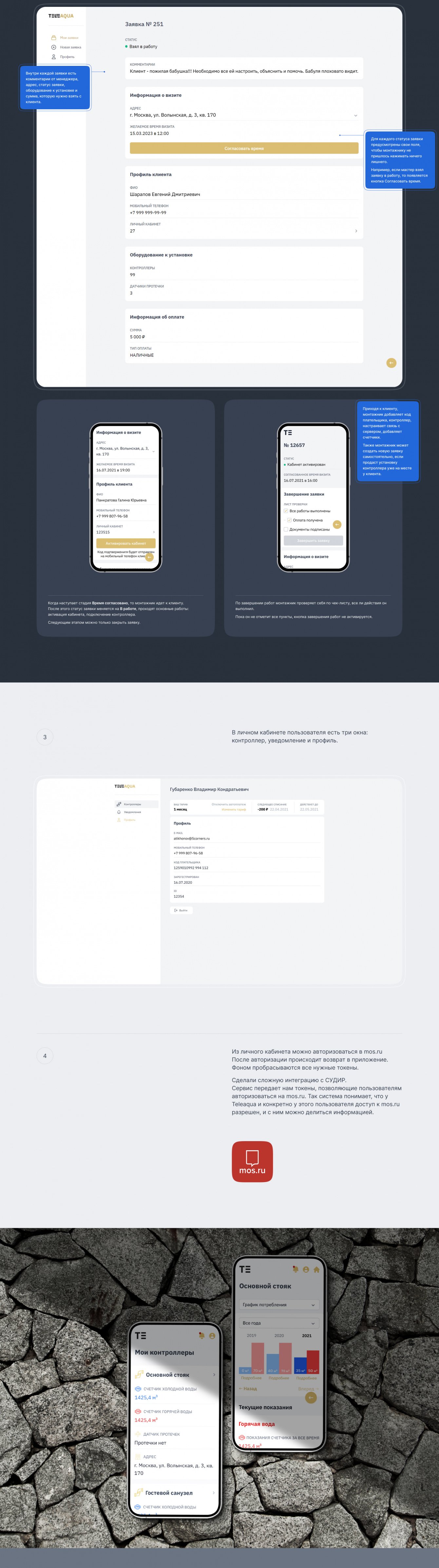 Клиент обратился к нам после решения создать контроллеры, которые позволят автоматически передавать показания счетчика воды в mos.ru и отслеживать протечки воды. Пользователям больше не нужно самостоятельно передавать показания. Он приобретает у Teleaqua контроллер (собственная разработка) и далее просто оплачивает счета.