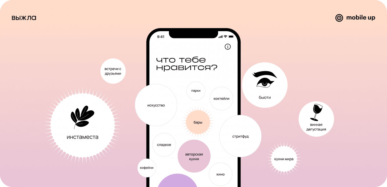 Задача — разработать лайфстайл-приложение с местами и маршрутами по интересам. Команда из «выжла» пришла с идеей приложения, которое предлагает места на основе интересов юзера. Дизайн-концепция уже была готова. От нас требовалось подключиться к проекту и помочь с технической реализацией визуальных решений. А самое главное — совместно разработать механизм, который бы безошибочно понимал пользователя.