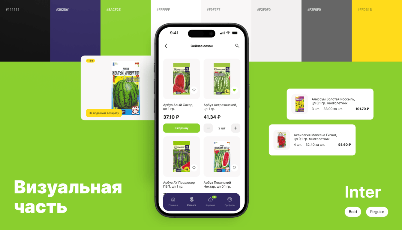 Чтобы выделиться среди «коллег» и конкурировать с современными лидерами рынка (Wildberries, OZON), было разработано мобильное приложение с применением лучших практик UX/UI.