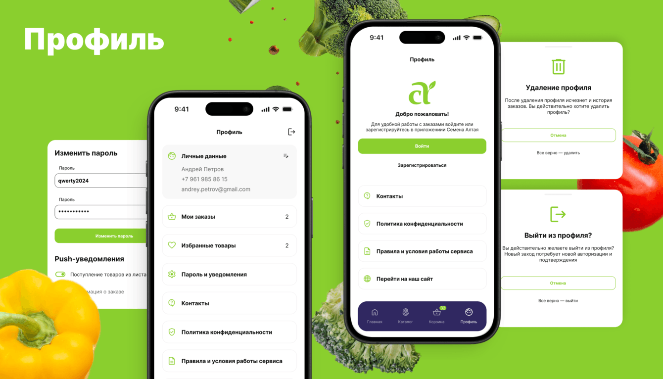 Применили креатив там, где он уместен. Например, на экране загрузки оживили фото овощей с помощью ИИ, а в тап-баре сделали микро-анимации иконок. При нажатии они либо покачиваются, либо подмигивают в зависимости от изображения иконки.