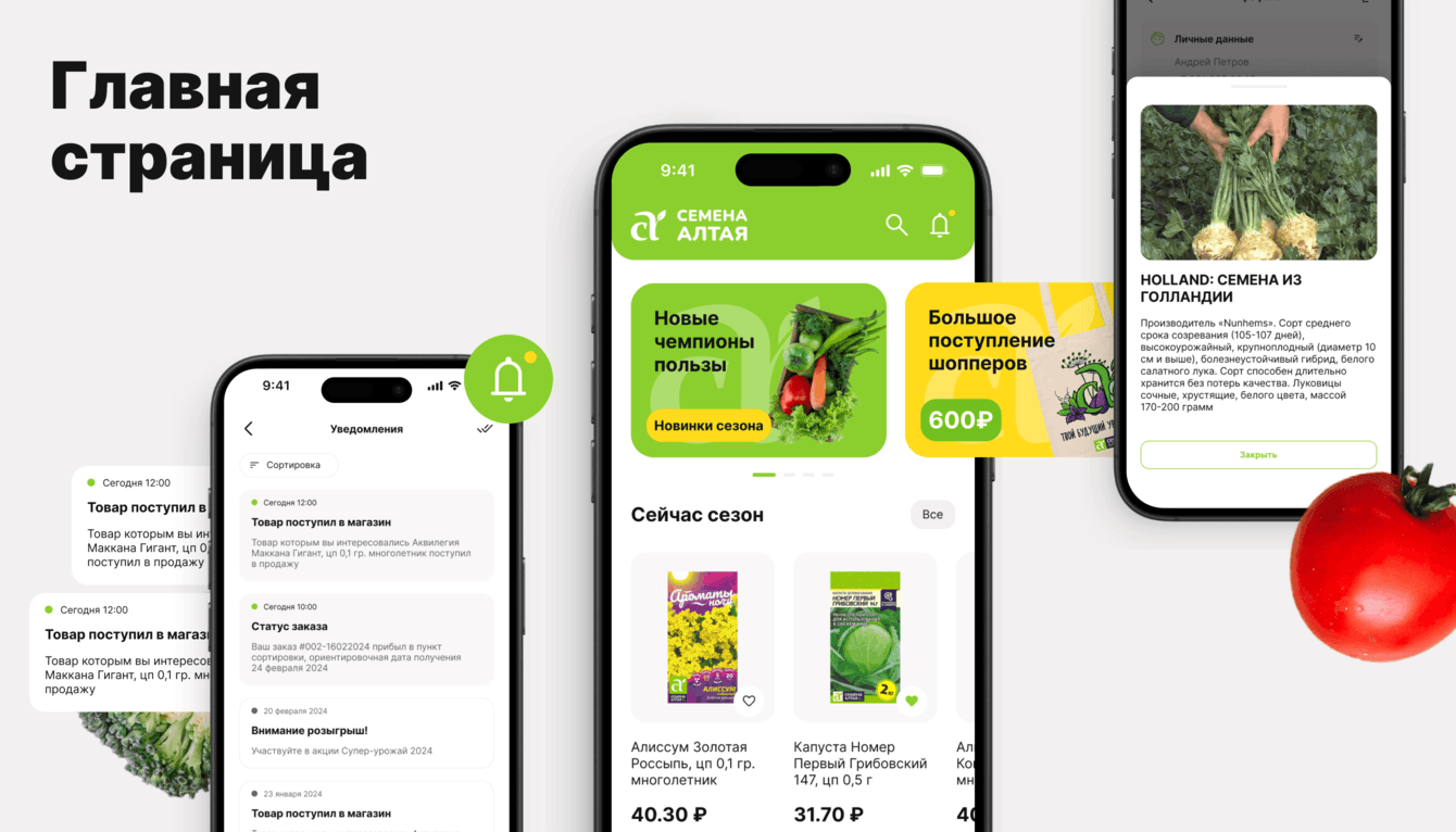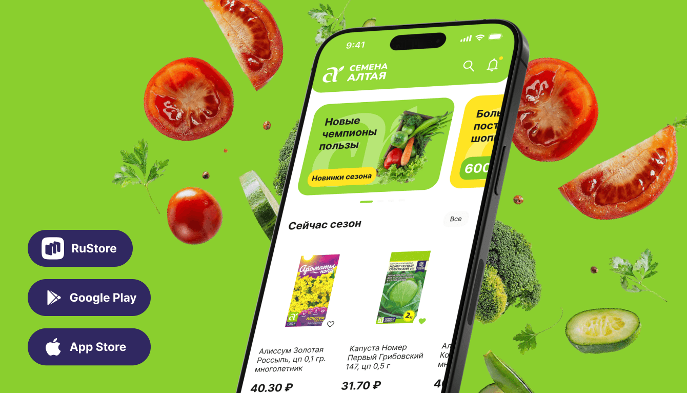Агрофирма «Семена Алтая» уже более 20 лет поставляют семена овощей и цветов на рынок. Клиент заметил, что 80% покупателей заходят на сайт с мобильных устройств. Этот факт натолкнул на мысль — почему бы не сделать процесс удобнее? Так в дополнение к сайту появилось мобильное приложение «Семена Алтая. Интернет-магазин».