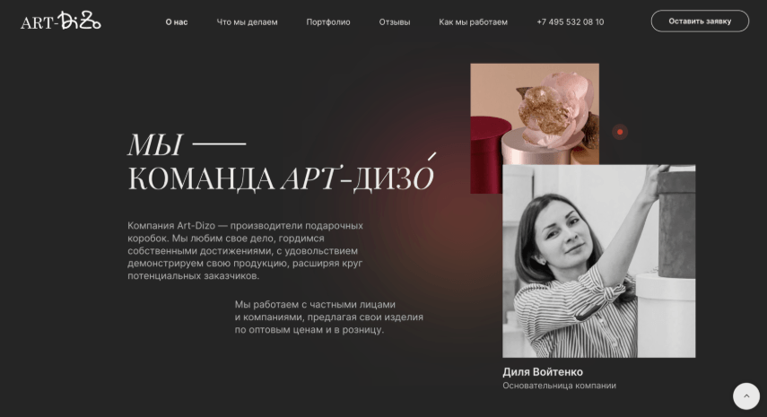 Компания «Art-Dizo» является производителем подарочной упаковки с 2009 года. В ассортименте компании коробки для цветов, подарочные пакеты, ложементы, индивидуальная подарочная упаковка и многое другое.