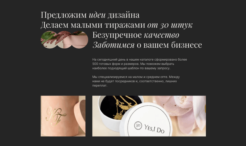 Основной задачей сотрудничества стала разработка нового продающего лендинга для привлечения заказов от компаний, которые хотят реализовать собственную брендированную упаковку для подарков.