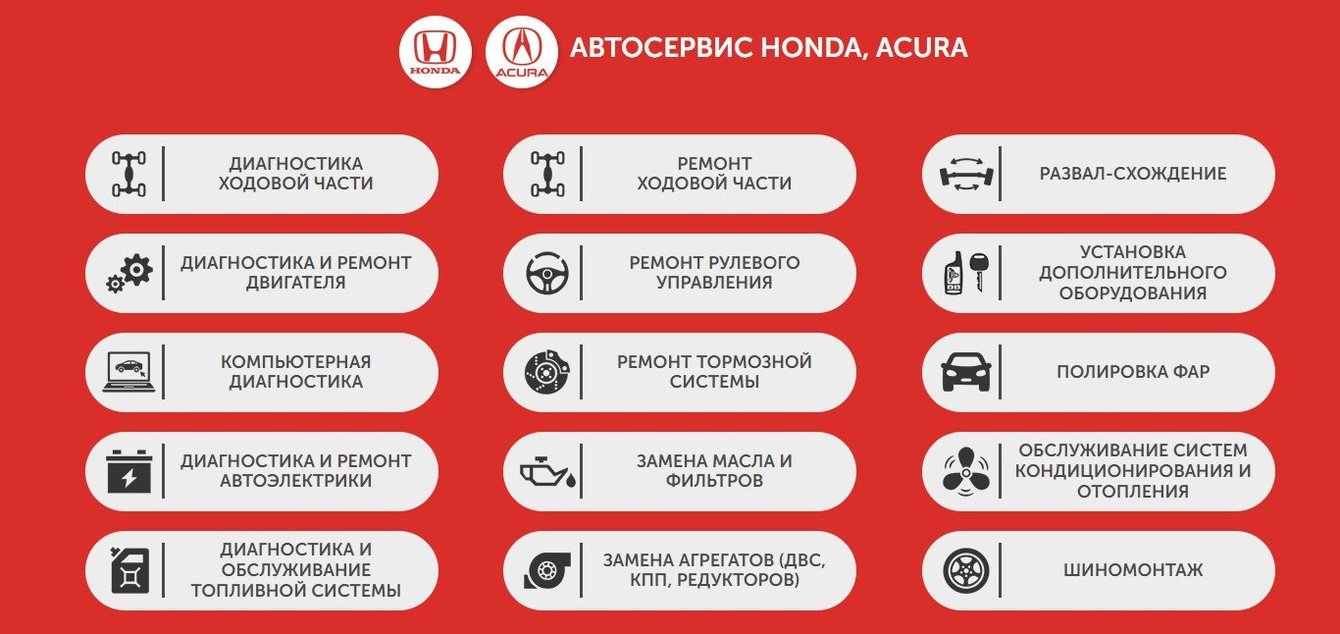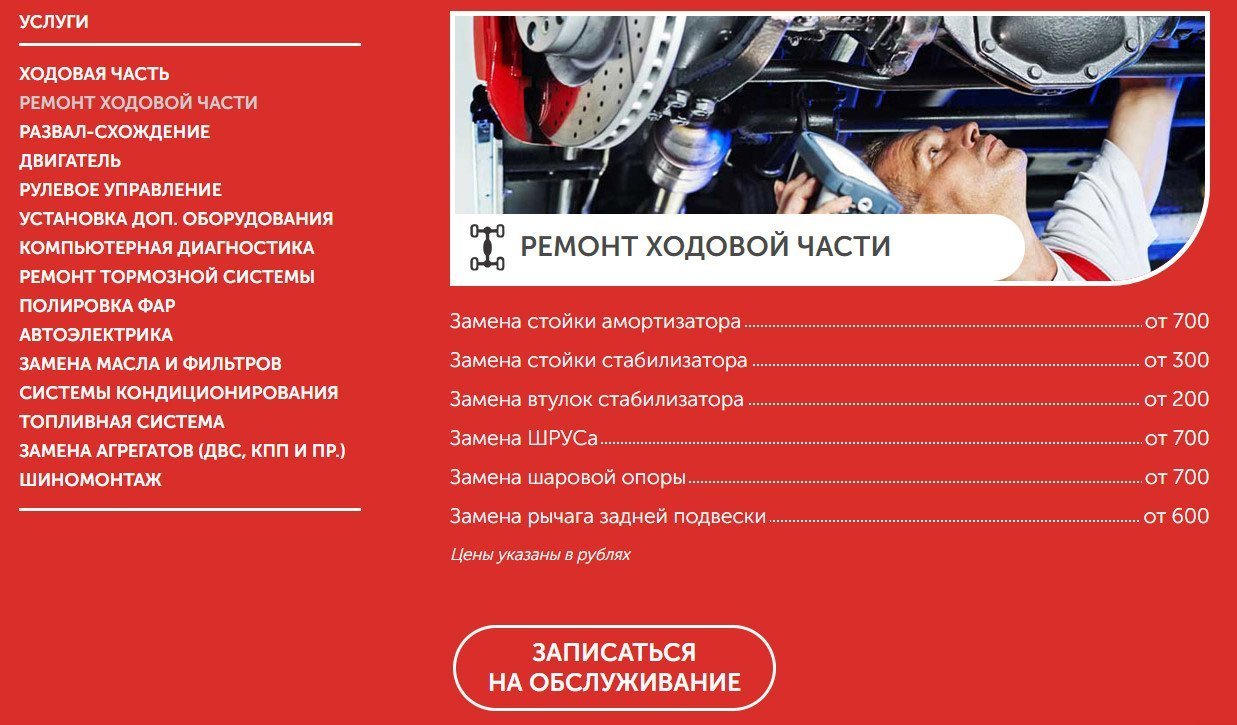 Весь первый экран раздела автоконцерна, занимает перечень оказываемых услуг