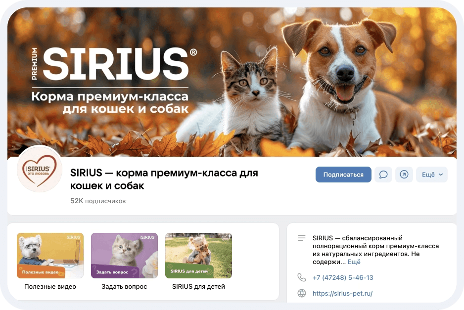 До работы с нами SIRIUS сотрудничал с крупным SMM-агентством, но результат их не устраивал. На этапе продажи мы сошлись в подходе и ценностях, поэтому ребята решили сменить подрядчика на нас. Главной задачей было разработать SMM-стратегию, которая позволила бы компании собрать в одном месте ветеринаров, заводчиков, владельцев животных и выстроить между ними диалог.