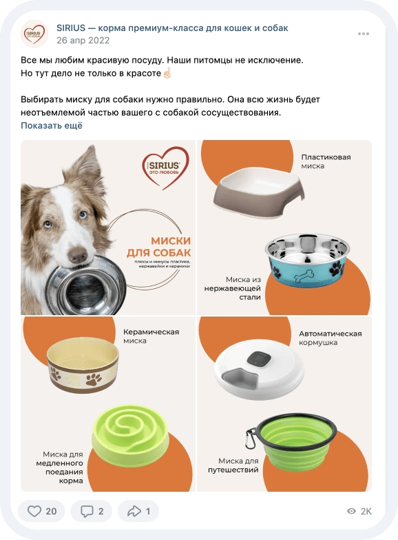 Информационный контент. Советы по уходу, статьи о правильном питании, материалы, помогающие владельцам животных лучше понимать своих питомцев. Этот тип контента повышал ценность группы для участников, укрепляя доверие к бренду.