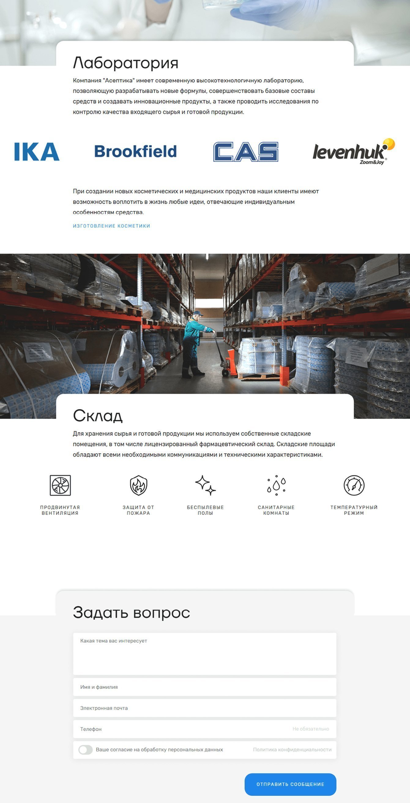 А качественные фотографии производственного комплекса, оборудования и лаборатории помогут пользователю глубже погрузиться в процесс производства.