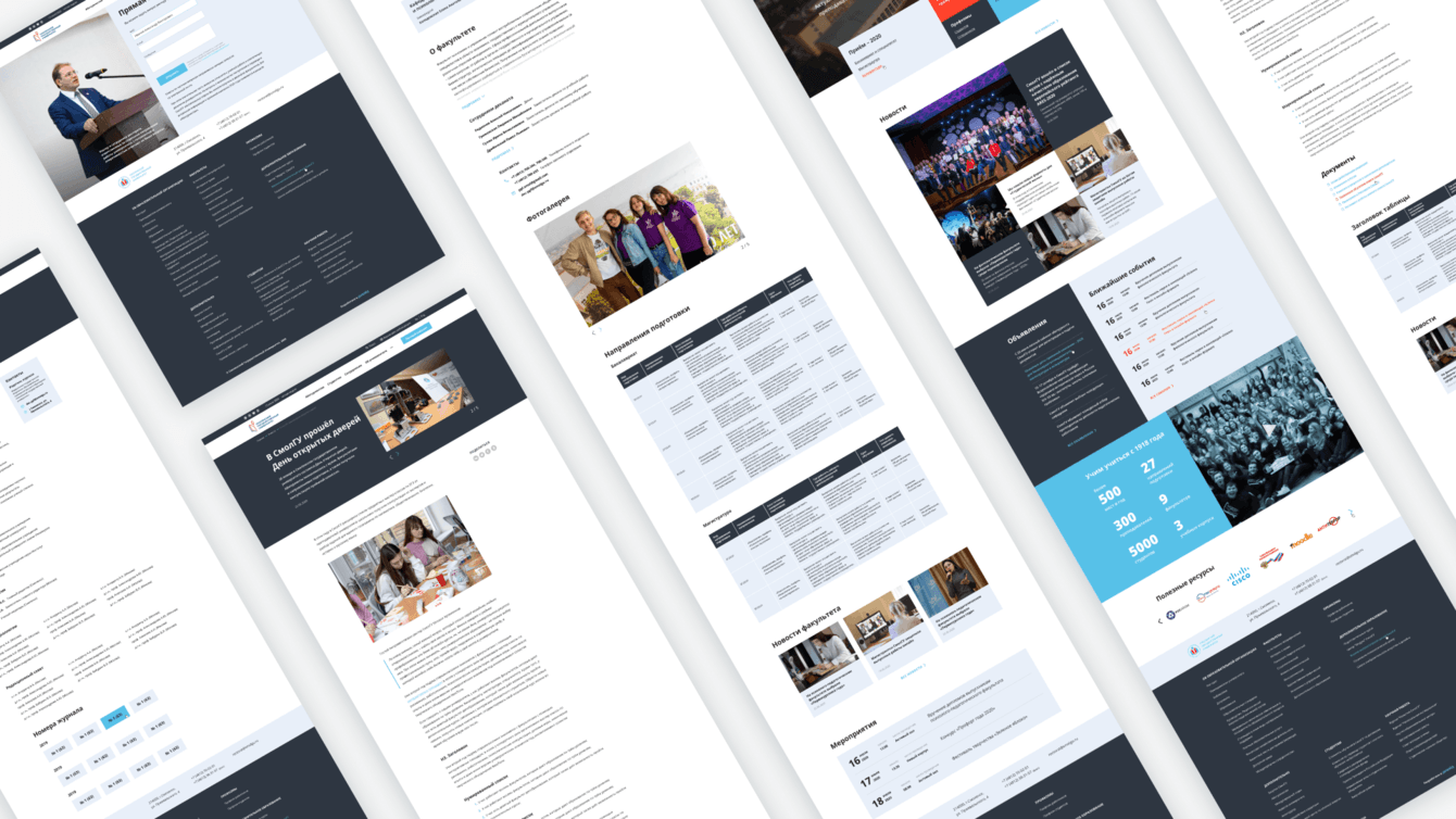 Создали сайт для университета со сложной структурой. Приходилось работать с большим объемом данных, которые должны соответствовать требованиям Федеральной службы по надзору в сфере образования и науки. В проекте участвовало несколько сторон, запросы и условия которых нужно было учесть.
