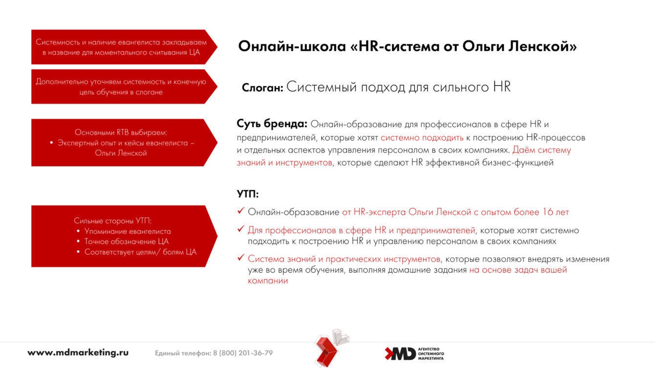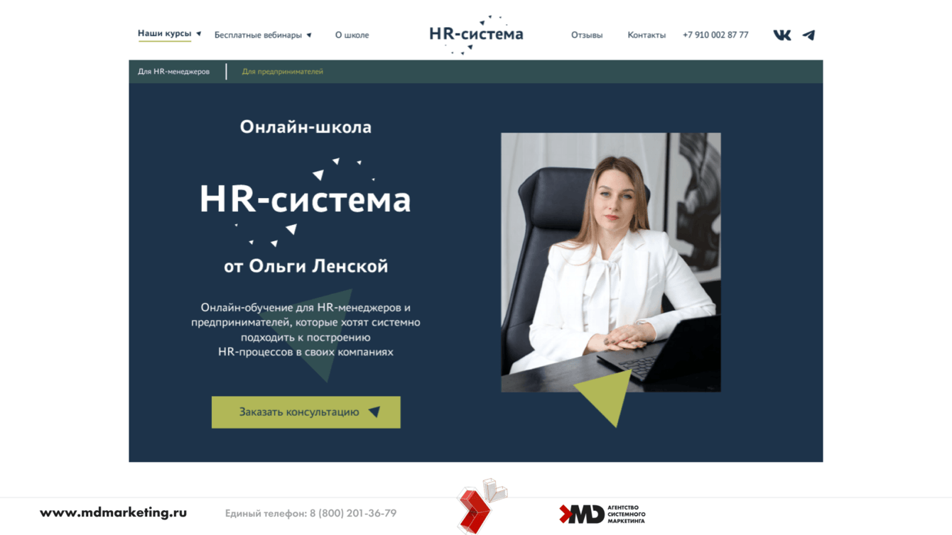 В агентство системного маркетинга MDM обратилась HR-специалист Ольга Ленская. Она уже достигла определенных высот в карьере, стала сооснователем консалтингового агентства, теперь хотела открыть свою онлайн-школу для специалистов и предпринимателей с упором на практические занятия. Ей нужно было понять, в каком направлении двигаться, оценить потенциал задумки и составить план действий по запуску школы.