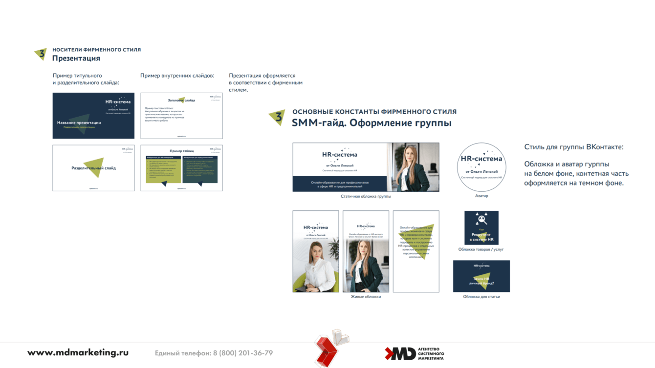 Показали, как в рамках созданной концепции нужно оформлять носители фирменного стиля от презентаций до страниц в соцсетях