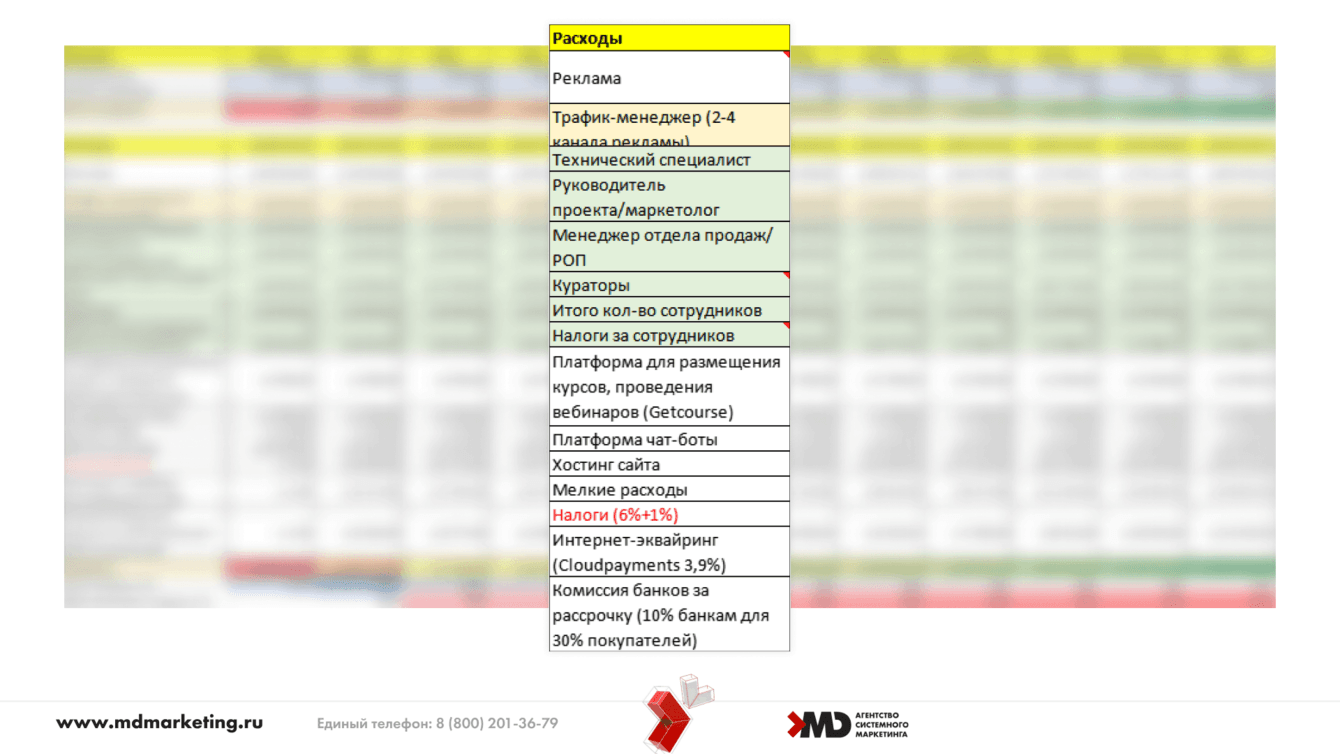 По нашим подсчетам онлайн-школа должна начать приносить прибыль на четвертом месяце работы. Мы подробно рассчитали расходы для первого года, учли работу менеджеров, кураторов, налоги, абонентскую плату платформ, бюджет на рекламу и отразили все в таблице.