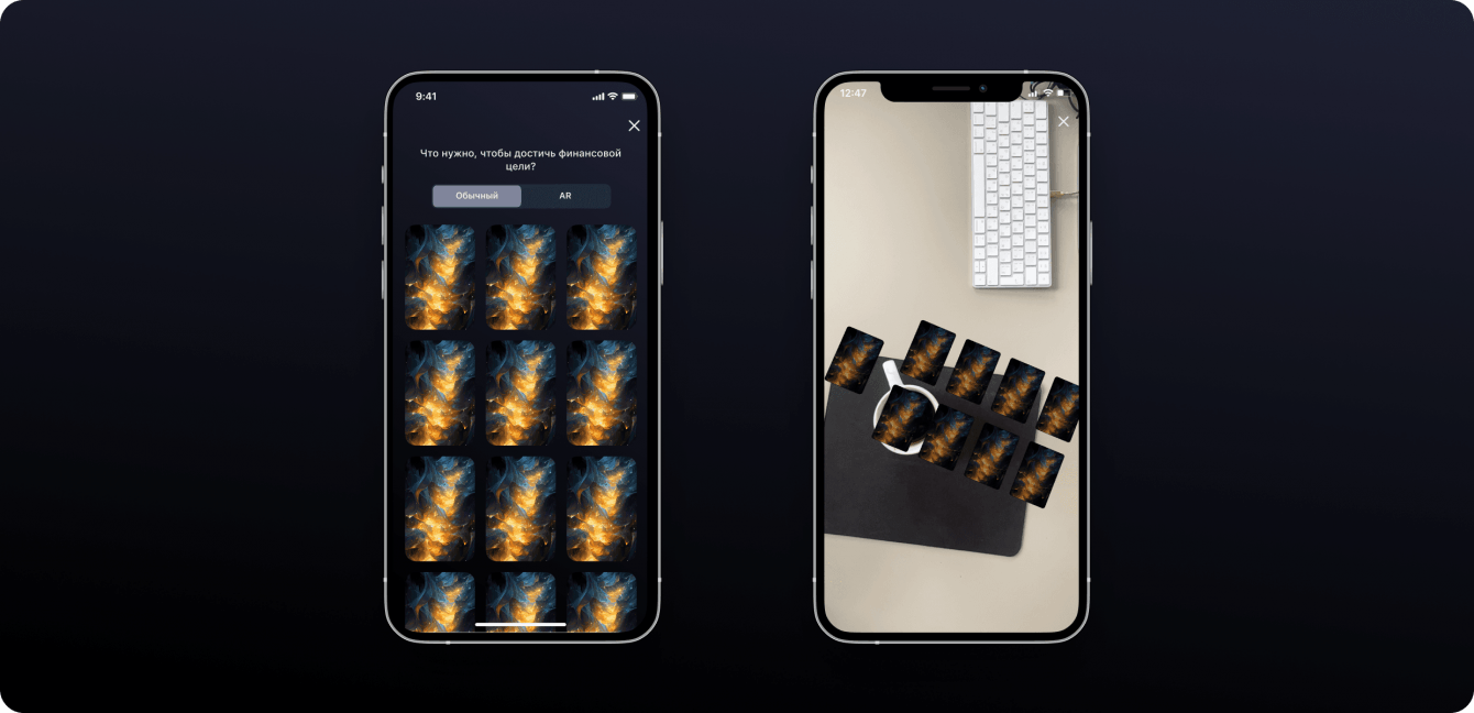 Чтобы ещё больше размыть границу между реальным и виртуальным, мы предоставили пользователям возможность делать расклады прямо на своём столе. Как это работает: человек наводит камеру на горизонтальную поверхность, и на экране телефона отображается колода. Из неё можно выбрать любую карту, покрутить и рассмотреть со всех сторон.