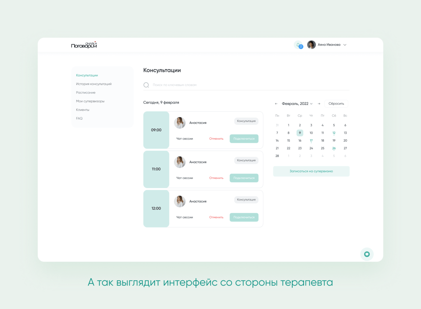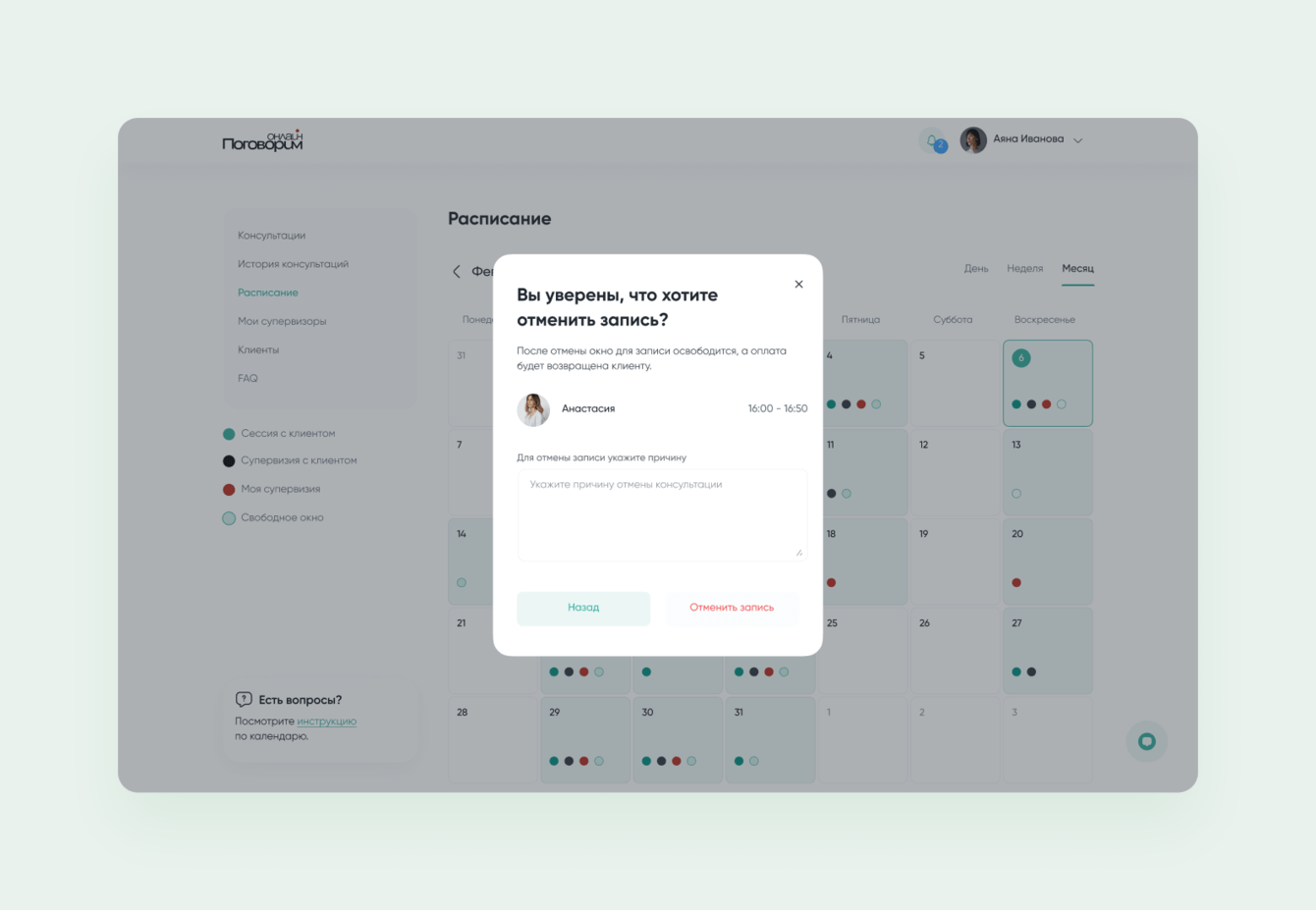 Чтобы терапевты точно видели все назначенные сессии и приходили на них, надо было создать удобный и практичный календарь.
