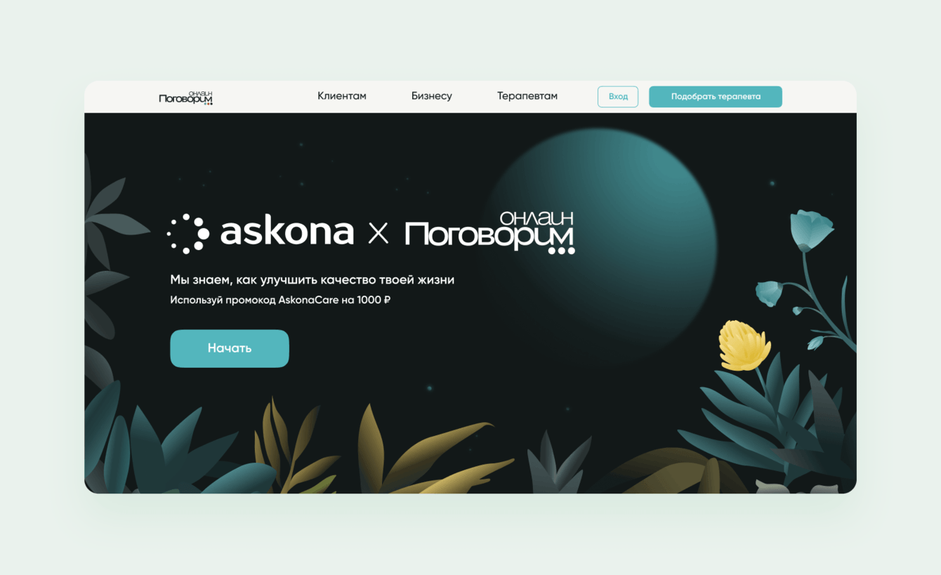 В рамках этого проекта перед нами стояли две дополнительные задачи: создание лендингов для партнерских проектов Поговорим.онлайн.