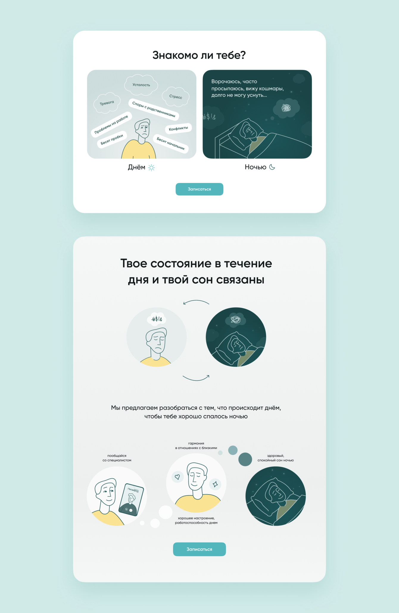 Визуальные решения для лендинга были разработаны с использованием иллюстраций из брендбука.