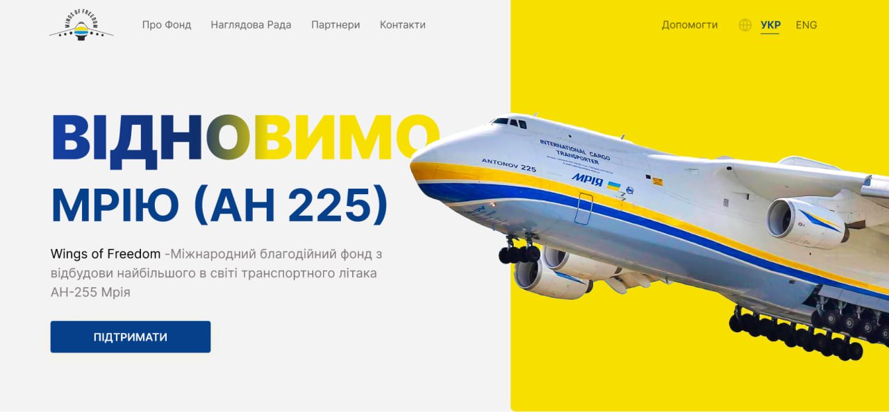 В рамках проекта было решено создать одностраничный лендинг-сайт, сочетающий в себе эмоциональную подачу, визуальный акцент на самолете АН-225 «Мрія» и четкий призыв к поддержке проекта восстановления. Основная задача — донести до пользователей уникальность самолета и важность его возвращения как символа свободы, инженерной мощи и национального духа Украины.