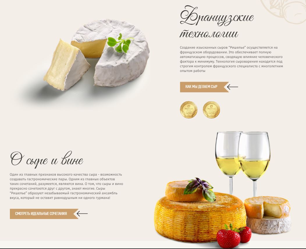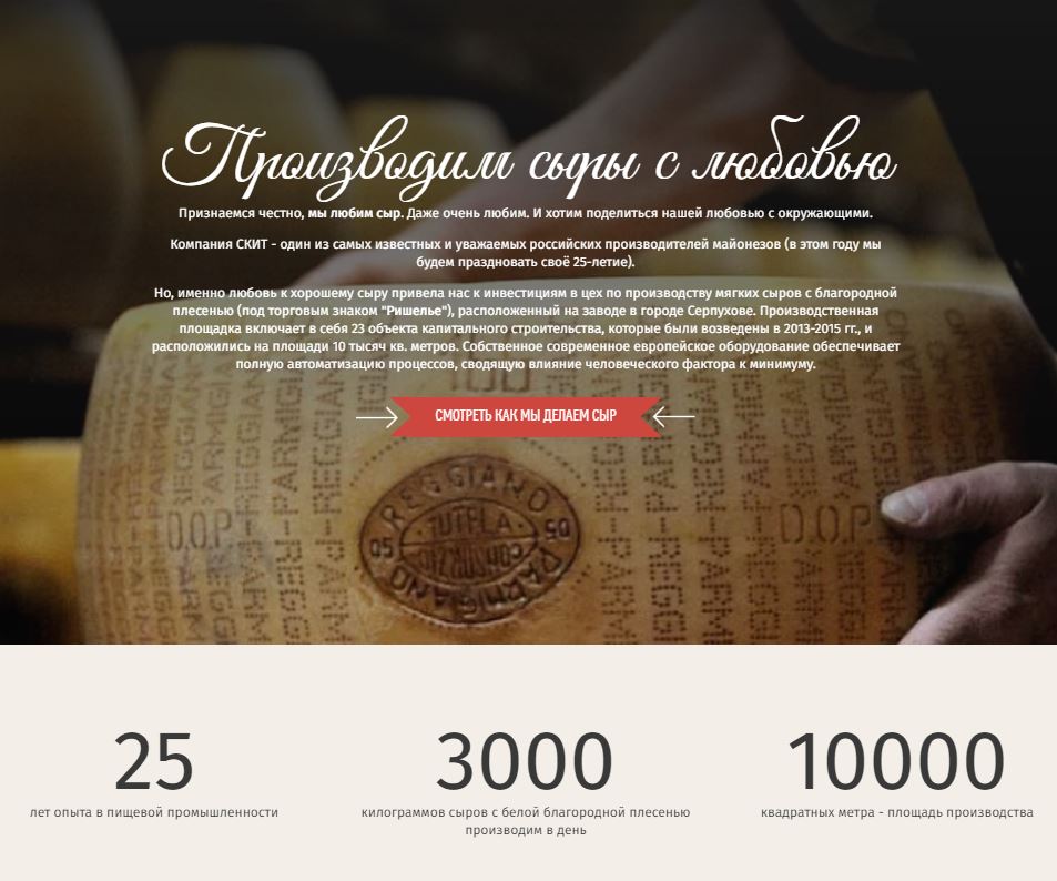Разработать адаптивный сайт для компании "СКИТ", производятщей сыры в России на высшем уровне качества для тех, кто по-настоящему ценит вкус настоящего сыра.