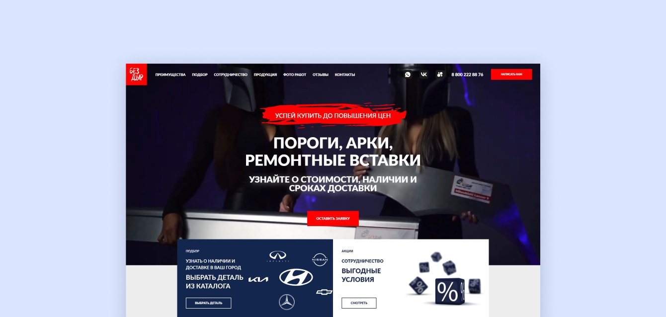 Разработать сайт для производителя кузовных порогов и арок "БезДыр”