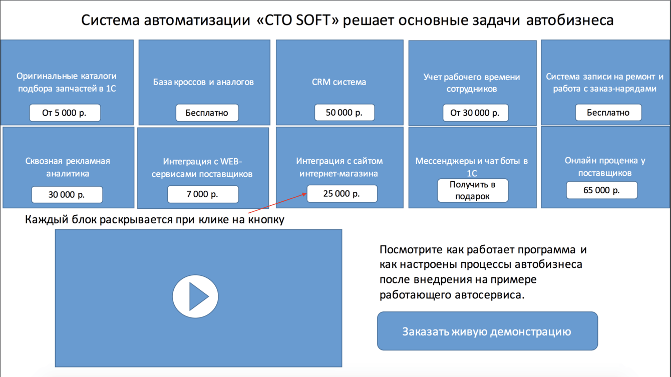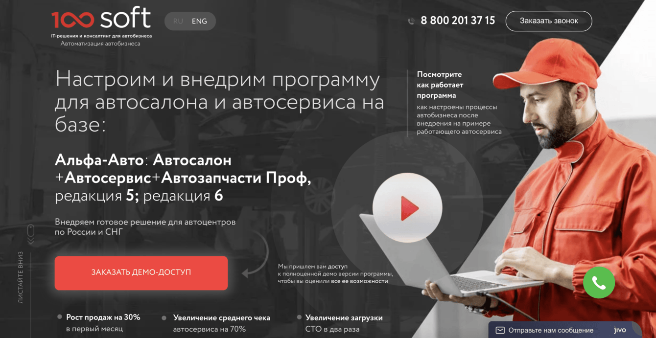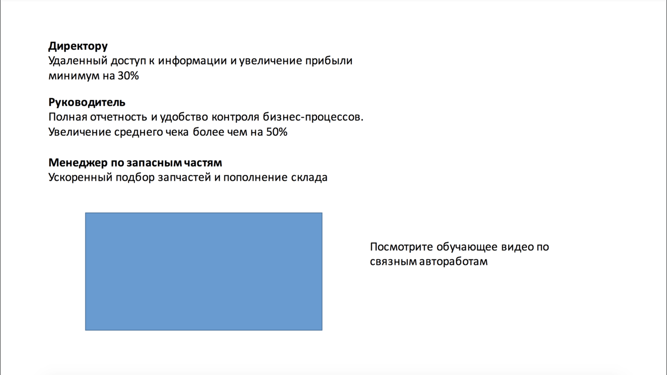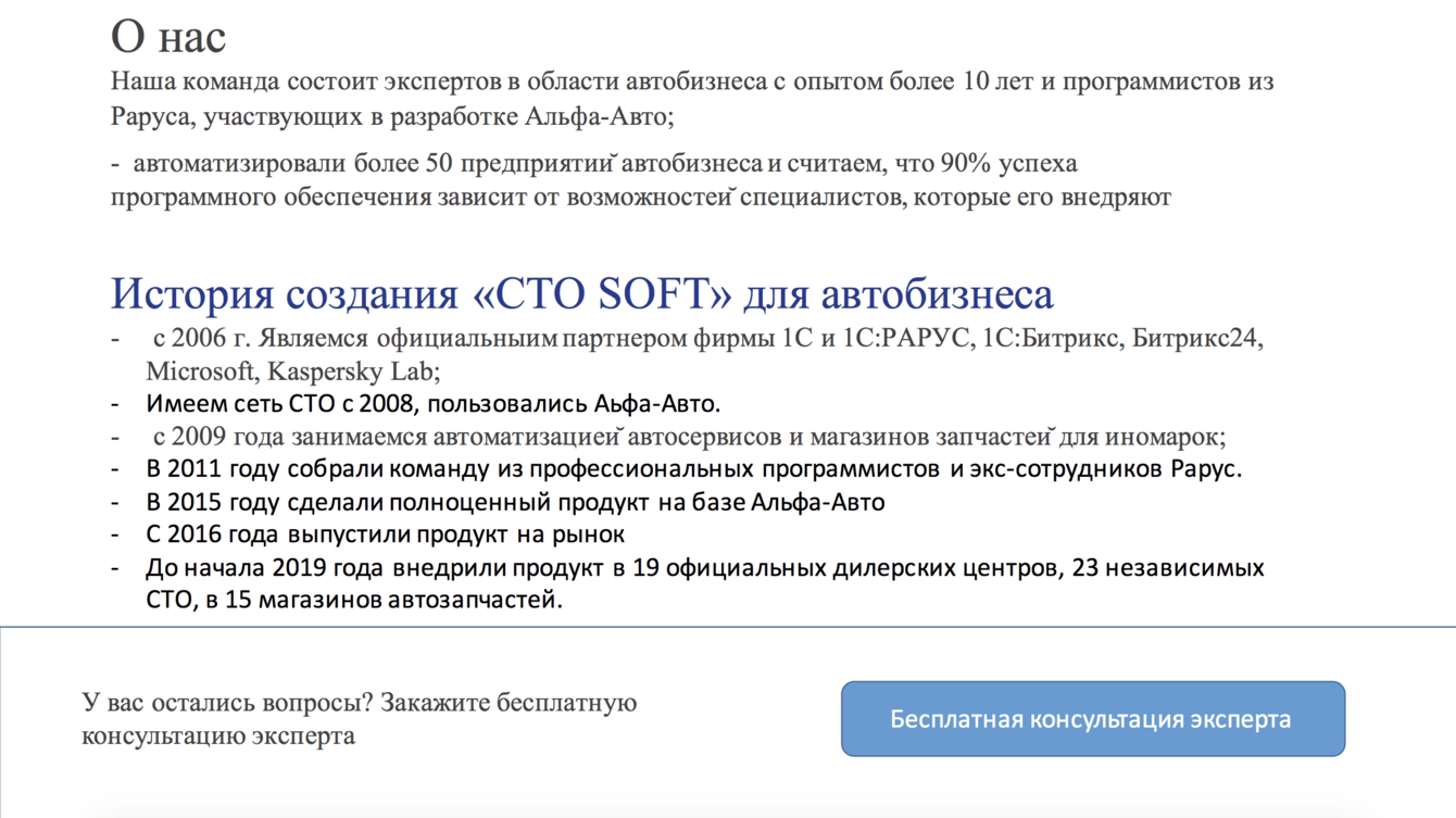Разработать сайт, максимально просто рассказать об услуге и донести ценность внедрения именно этого продукта в автобизнес: автосалоны, автосервисы.
