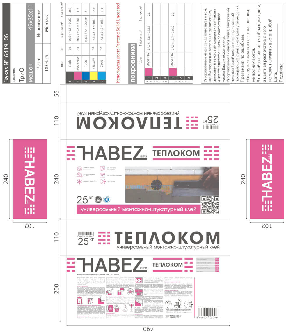 Разработать 3D-модели для презентации продукции Хабезского гипсового завода — сухих строительных смесей различного назначения. Для разработки 3D-моделей заказчик предоставил изображения мешков для 35 видов сухих смесей.