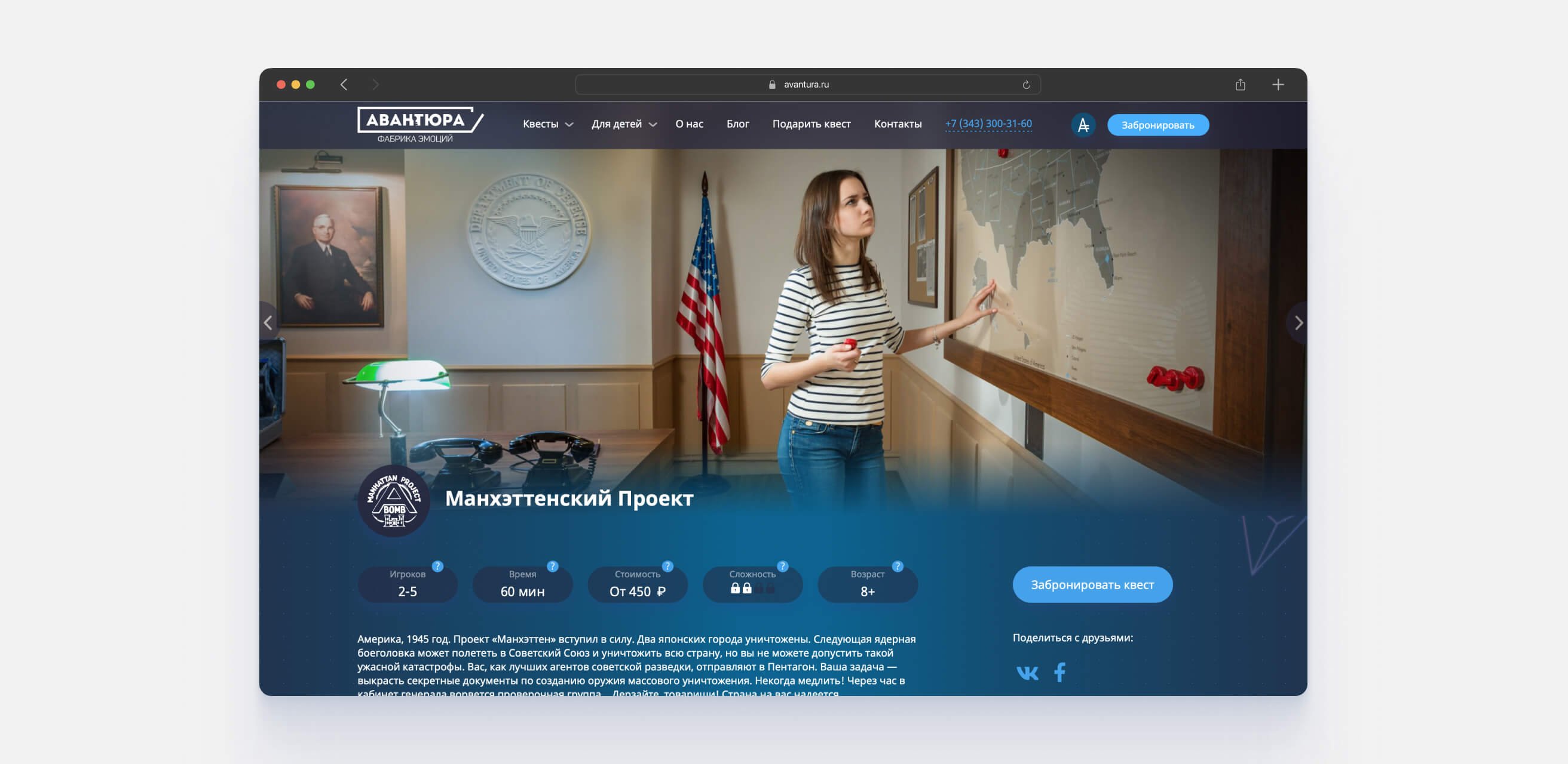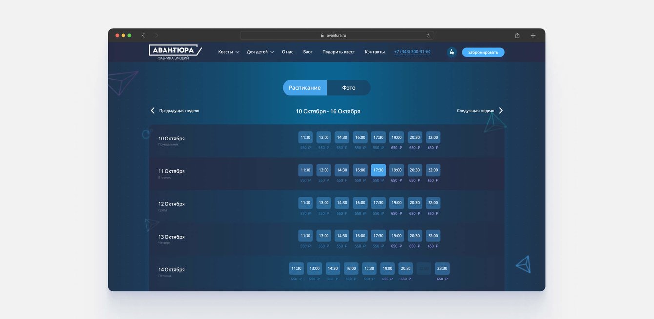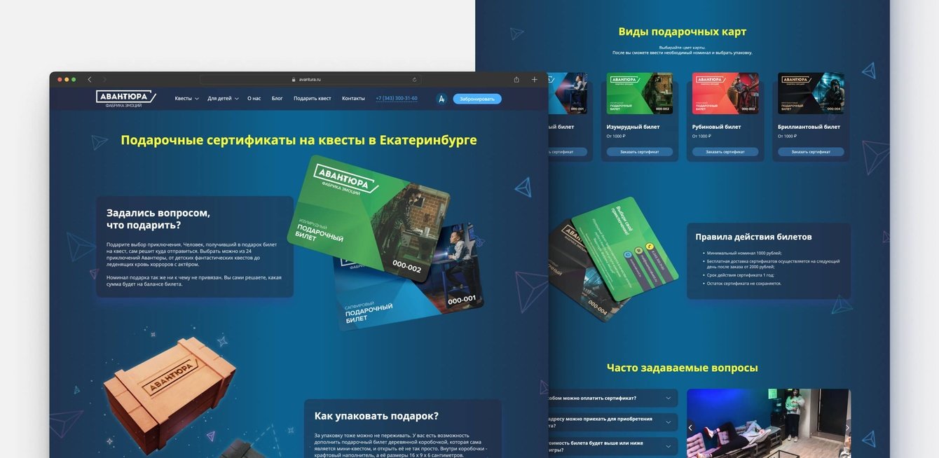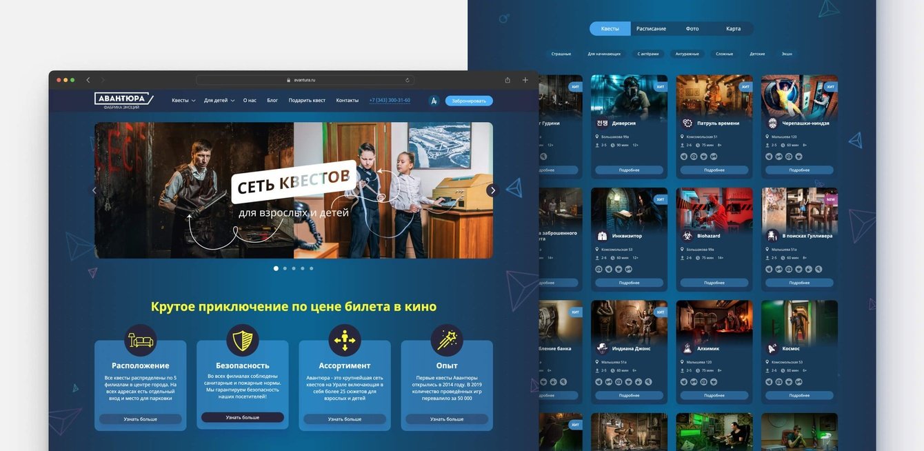 На момент знакомства с нами у Авантюры был активный сайт, пользующийся спросом, а также новый сайт, находящийся в разработке. В дальнейшем планировалось объединить старый сайт и сайт квестов Территории под единым новым доменным именем.
