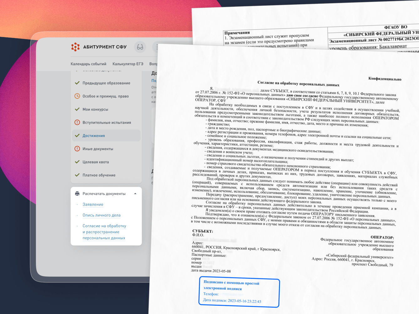 Университету нужно было новое решение, удобное для сотрудников и абитуриентов. Требовалось реализовать двухсторонний обмен данными с ЕПГУ, получение информации из ФИС, использование простых электронных подписей. Заказчик хотел получить современный сервис, который поддержит имидж СФУ, как ведущего вуза Восточной Сибири, укрепит его собственный бренд.