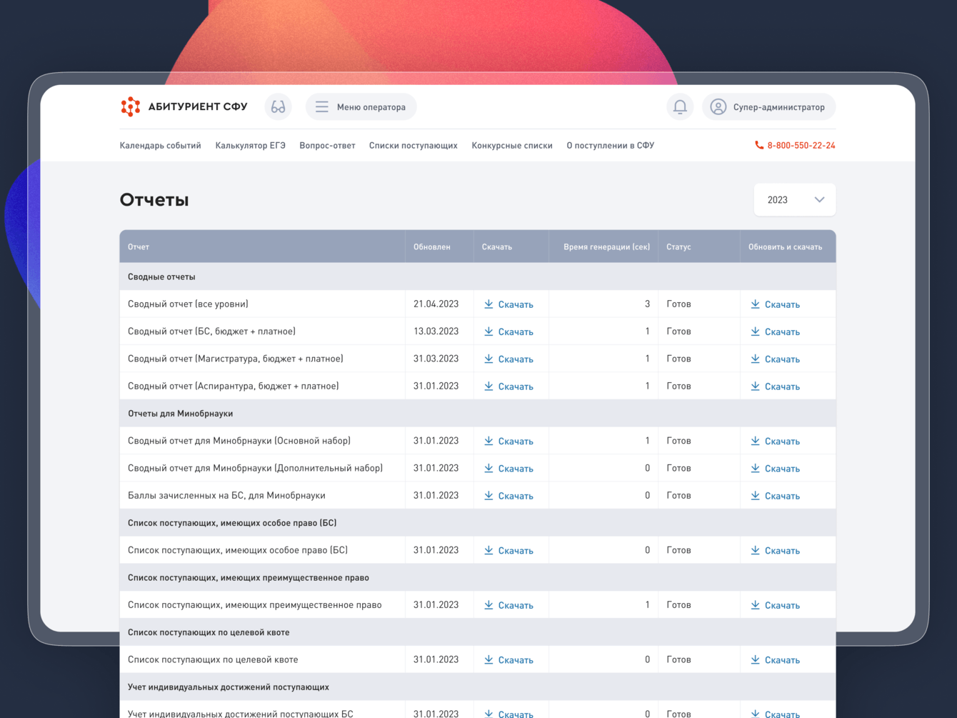 В результате наш продукт позволил СФУ успешно провести приемную кампанию 2022.