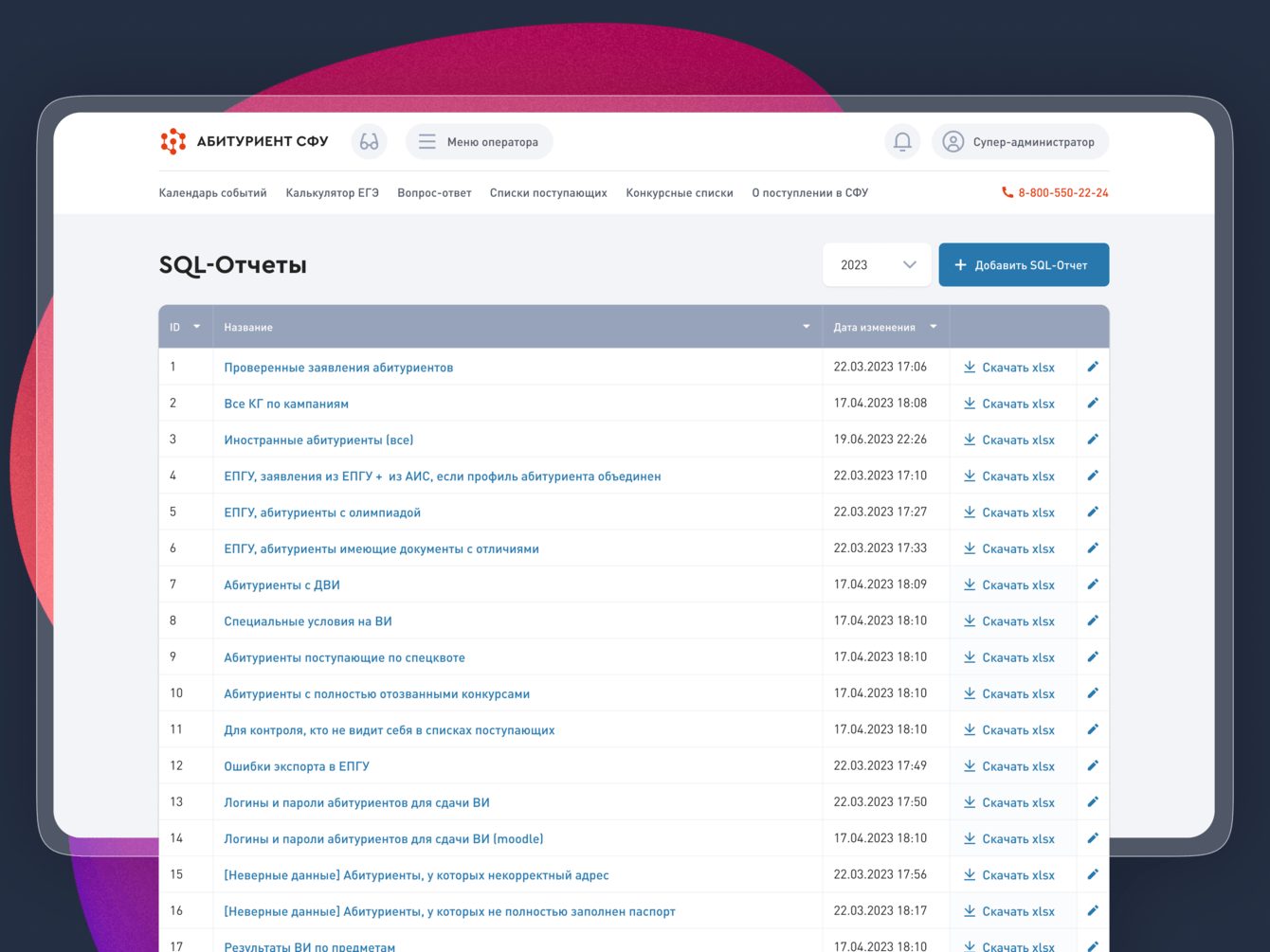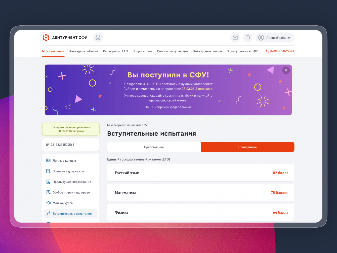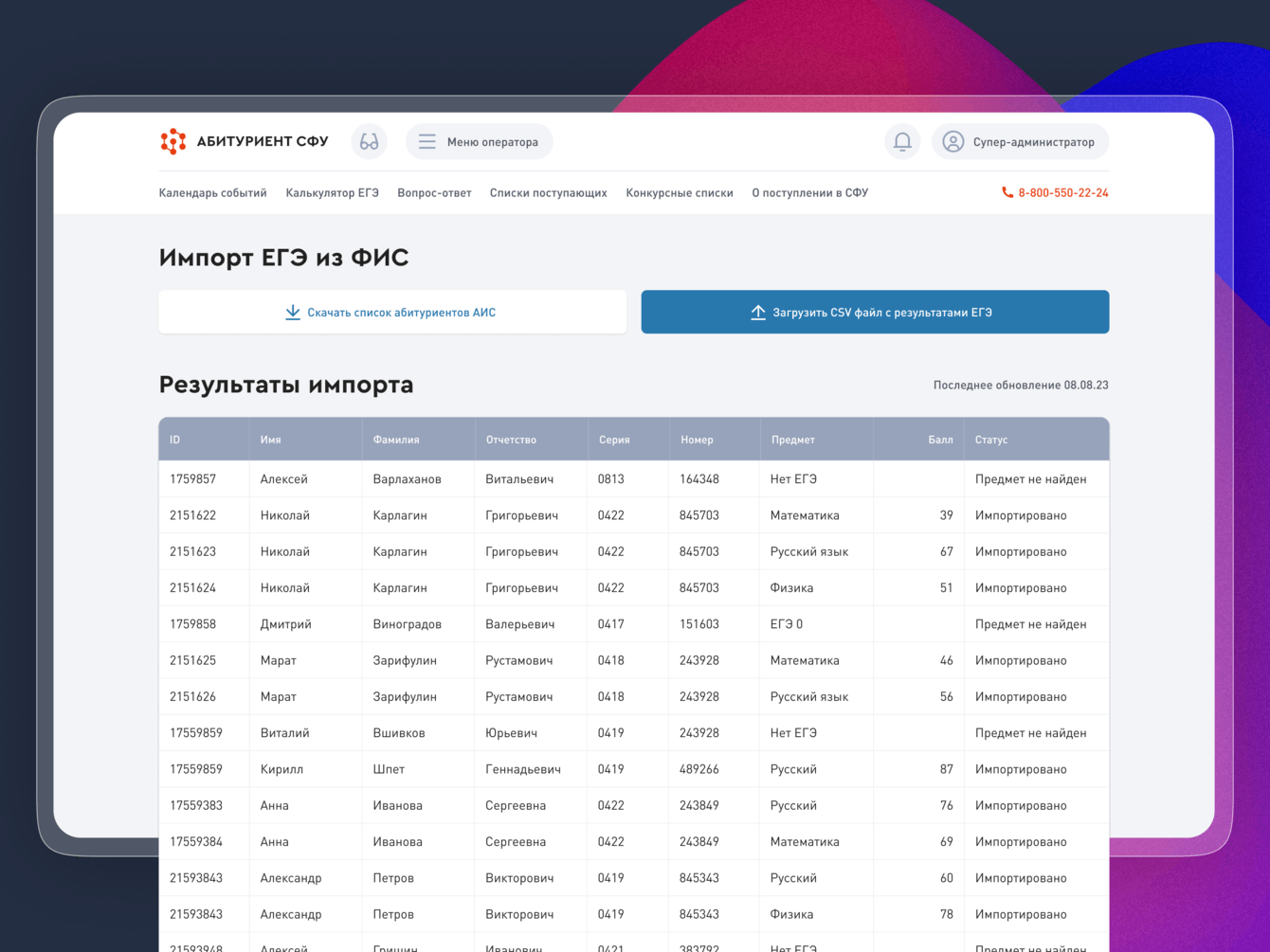 В результате наш продукт позволил СФУ успешно провести приемную кампанию 2022.